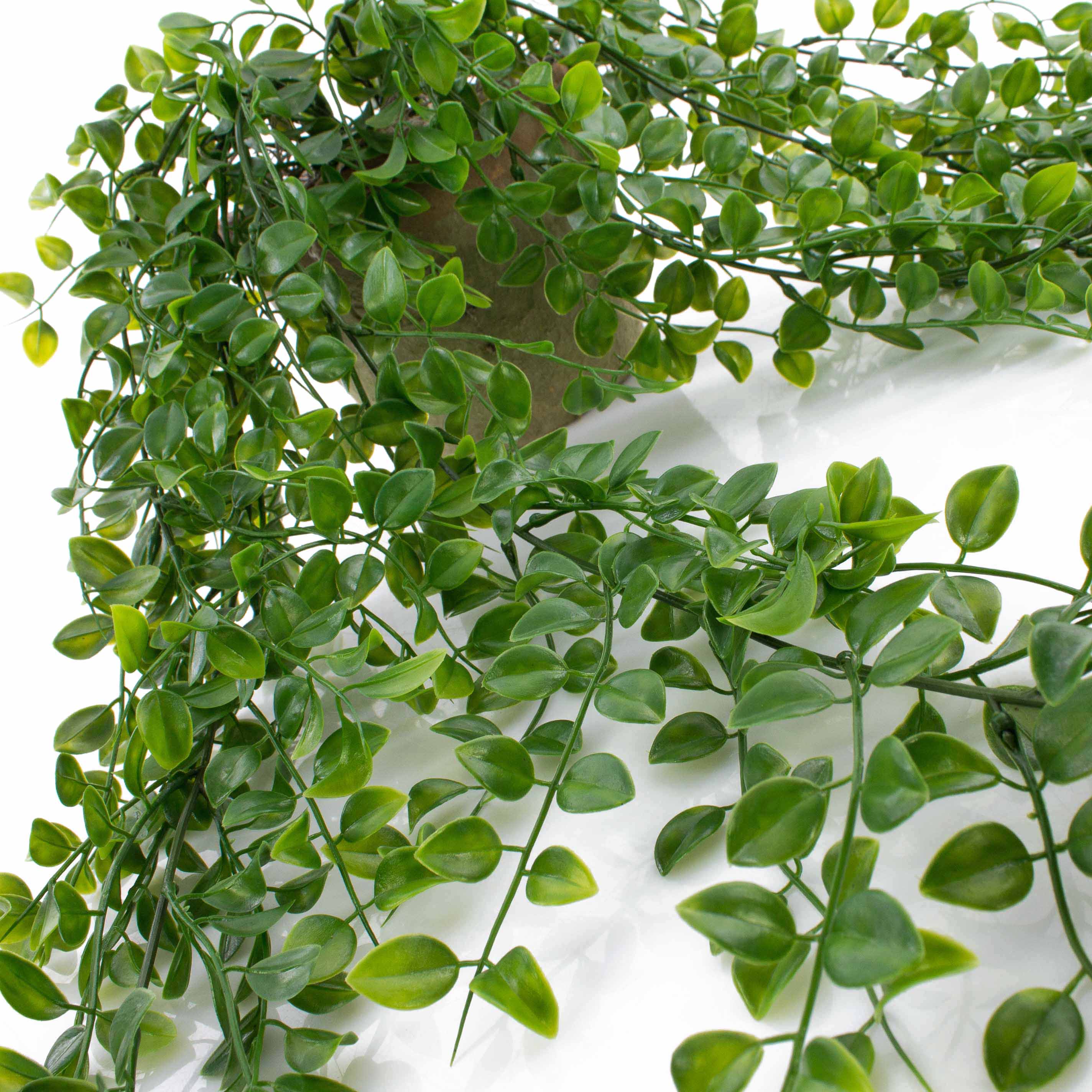 - Comprised of 6 hanging ramified tendrils with numerous round leaves made of green plastic