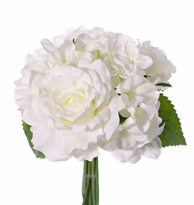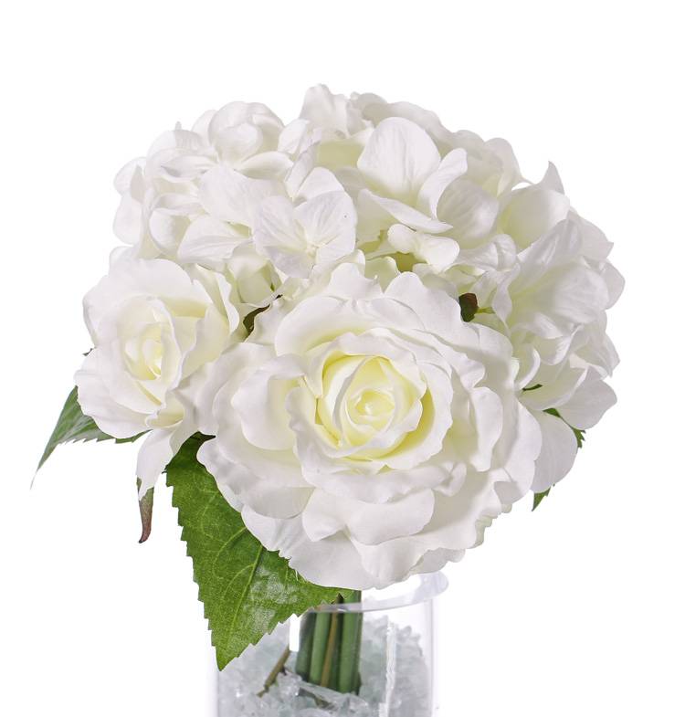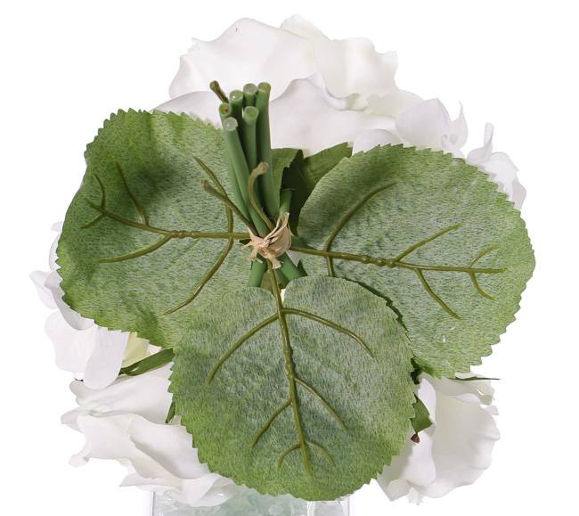 Fake hydrangea bouquet SANDRINE, roses, white, 10"/25cm, Ø8"/20cm