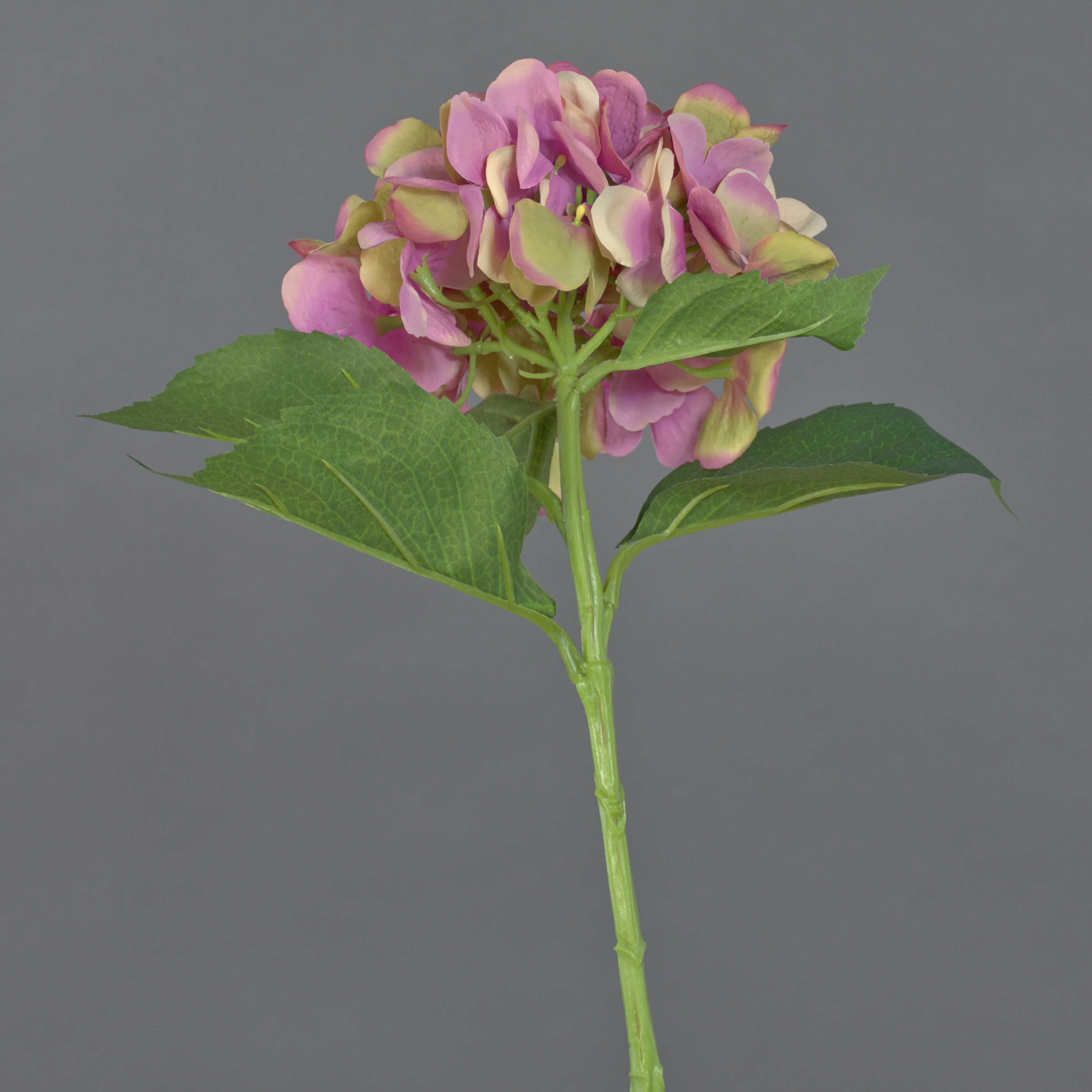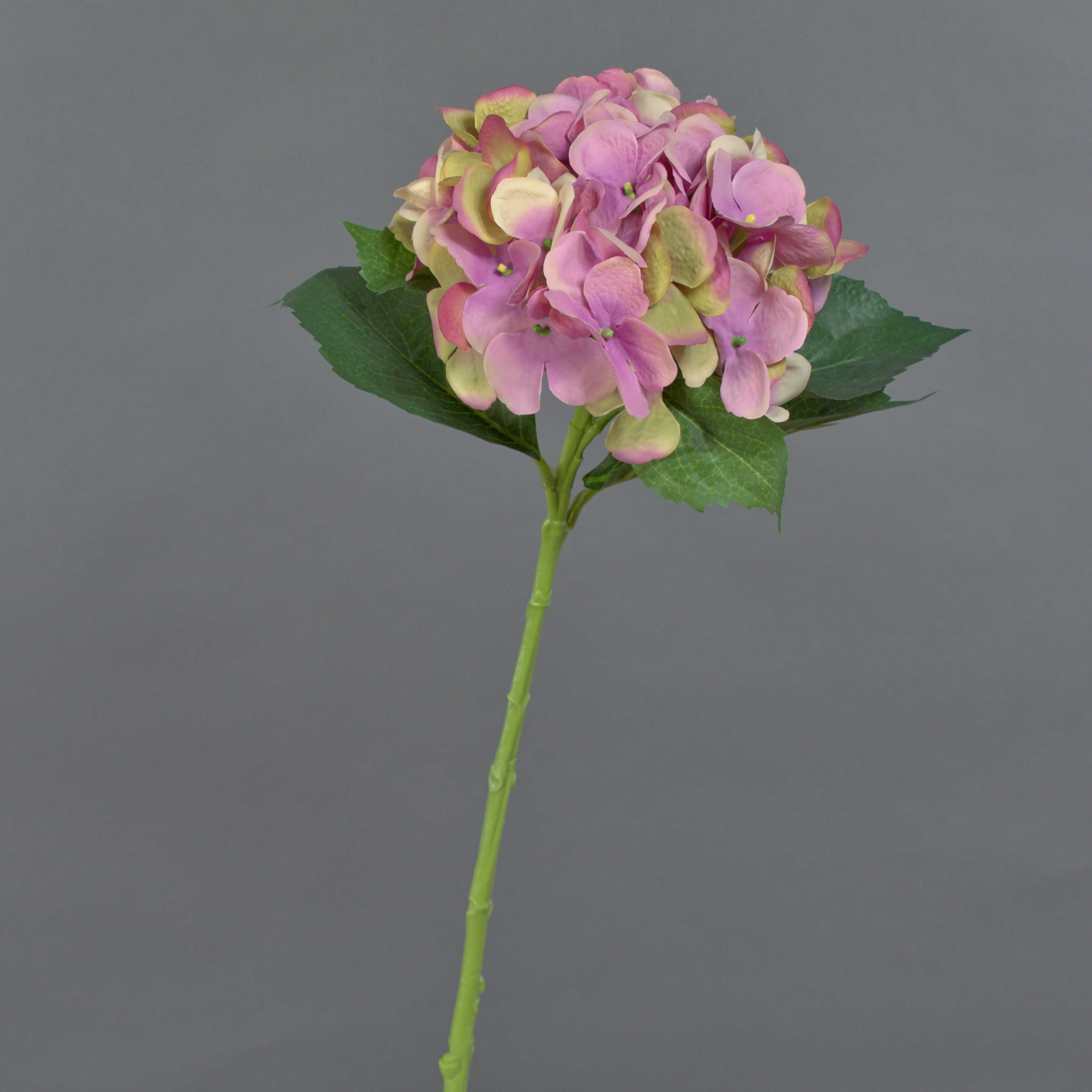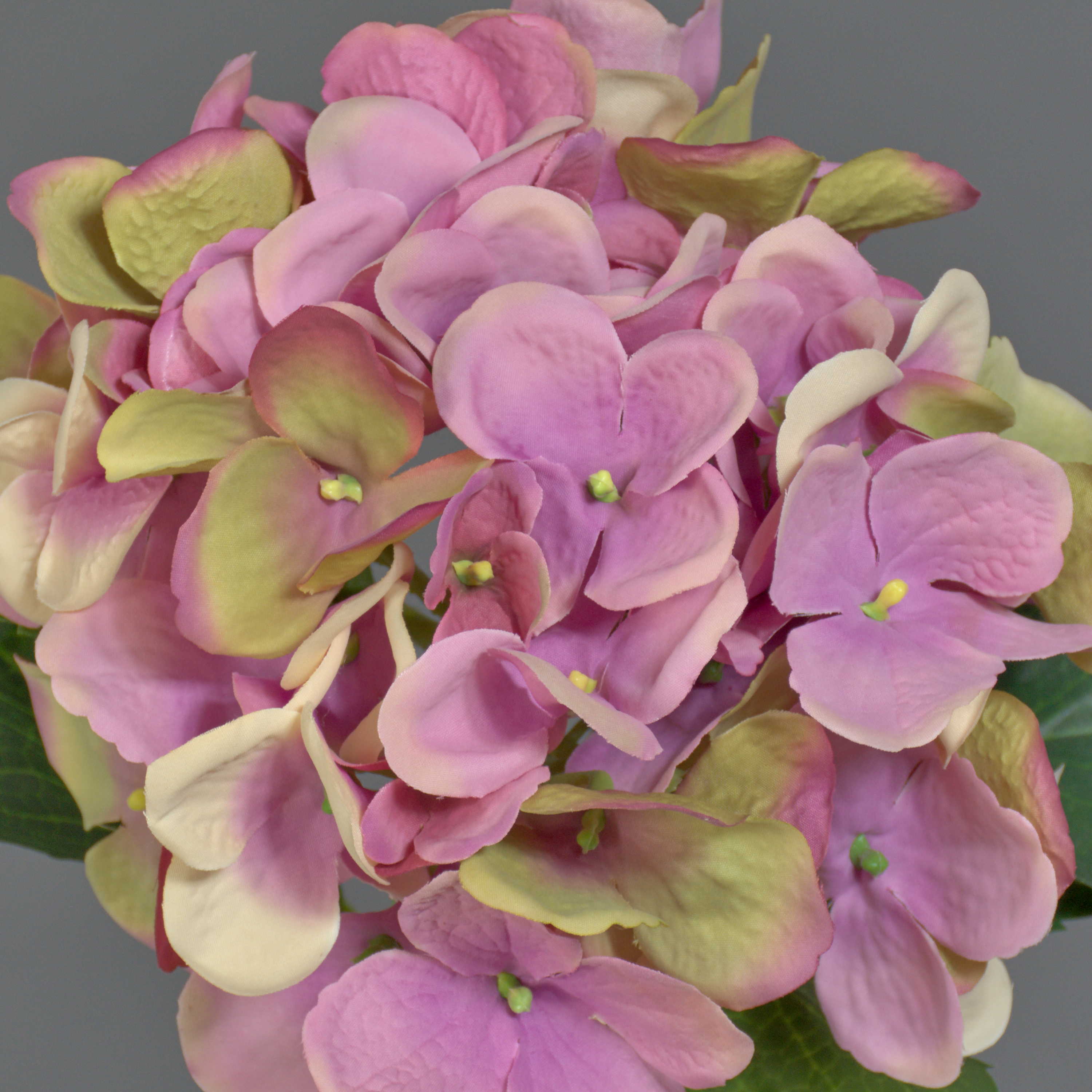 The artificial Hydrangea flower GABRIELLA from the new spring collection 2014 measures approx. 20"/50 cm in length. Individually as well as in a bunch, the decorative flower is nice to look at with its large flowers and in combination with the new rose-coloured bloom.
