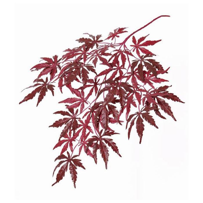 Artificial branch DIRK approx. 28"/70 cm long with approx. 35 serrated, star-shaped leaves in colour bordeaux.