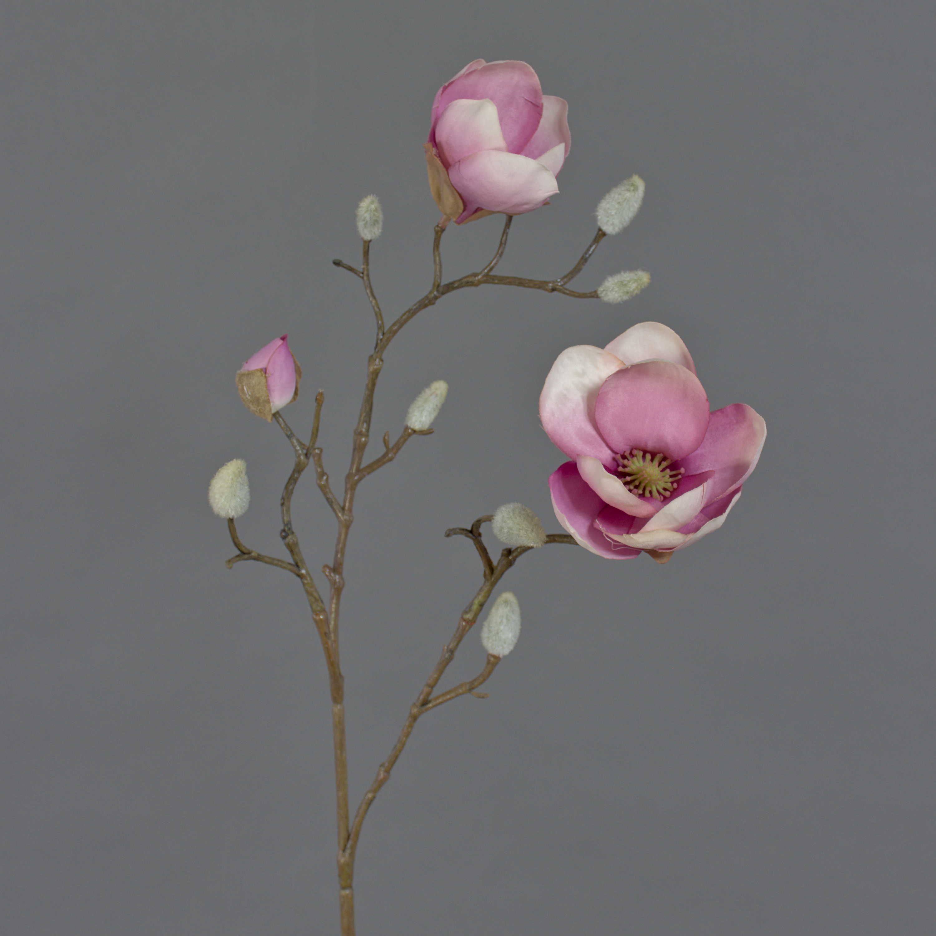 Fake magnolia KOSTAS, light pink-dark pink, 22"/55cm, Ø2"-3.1"/5-8cm