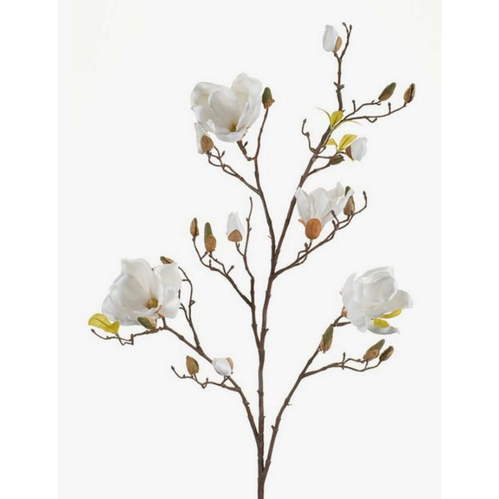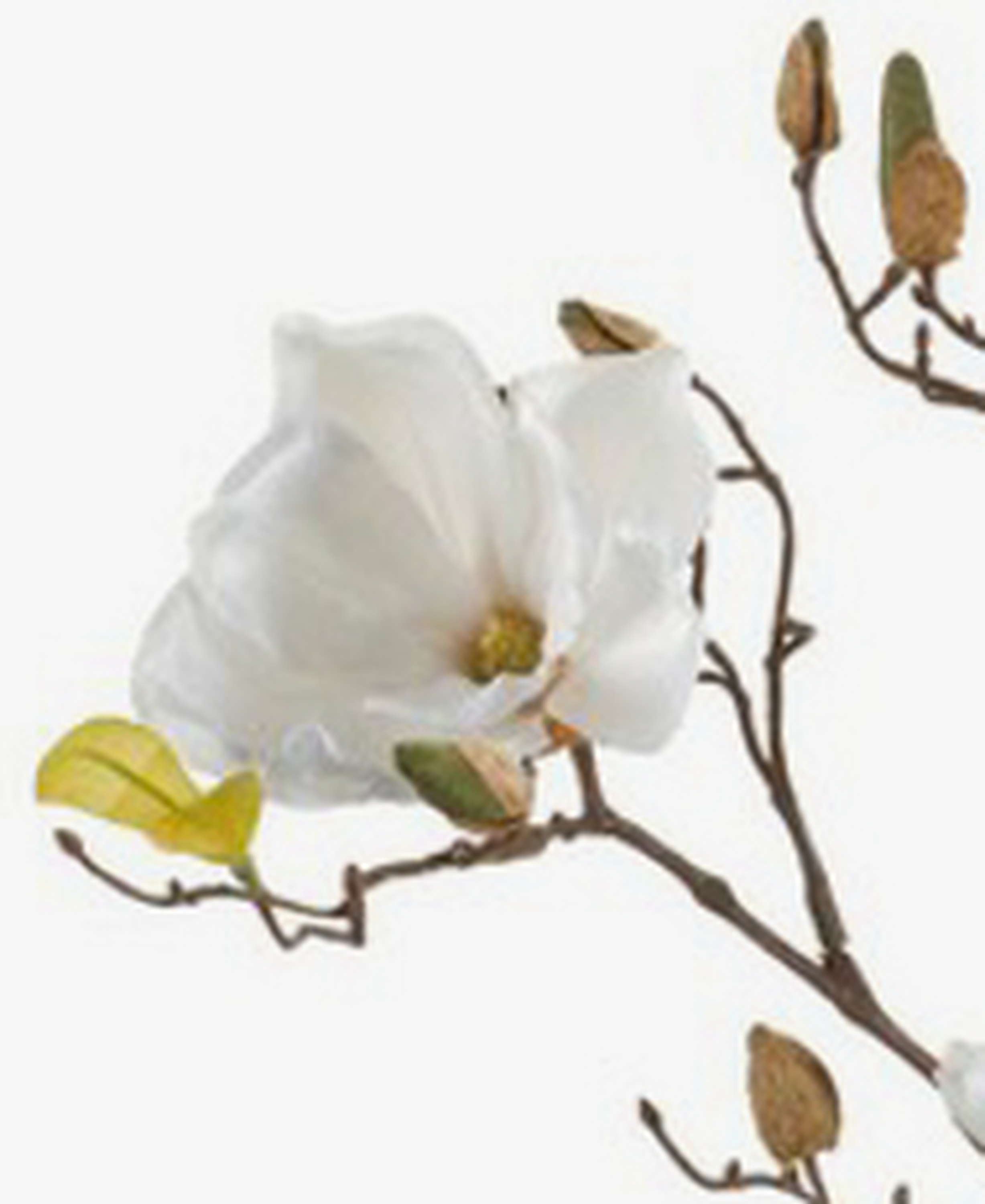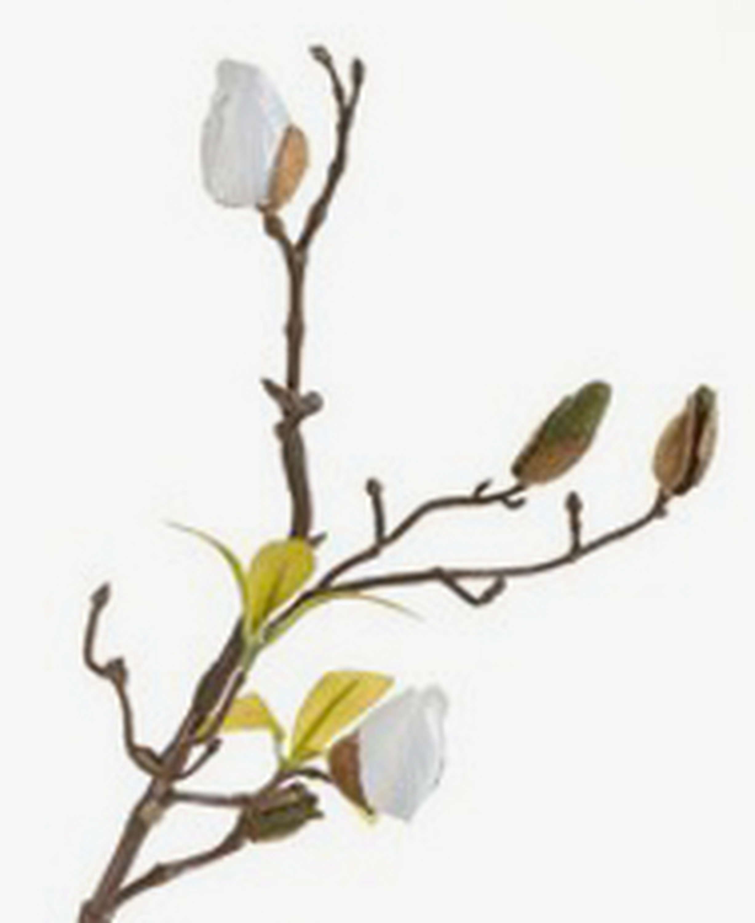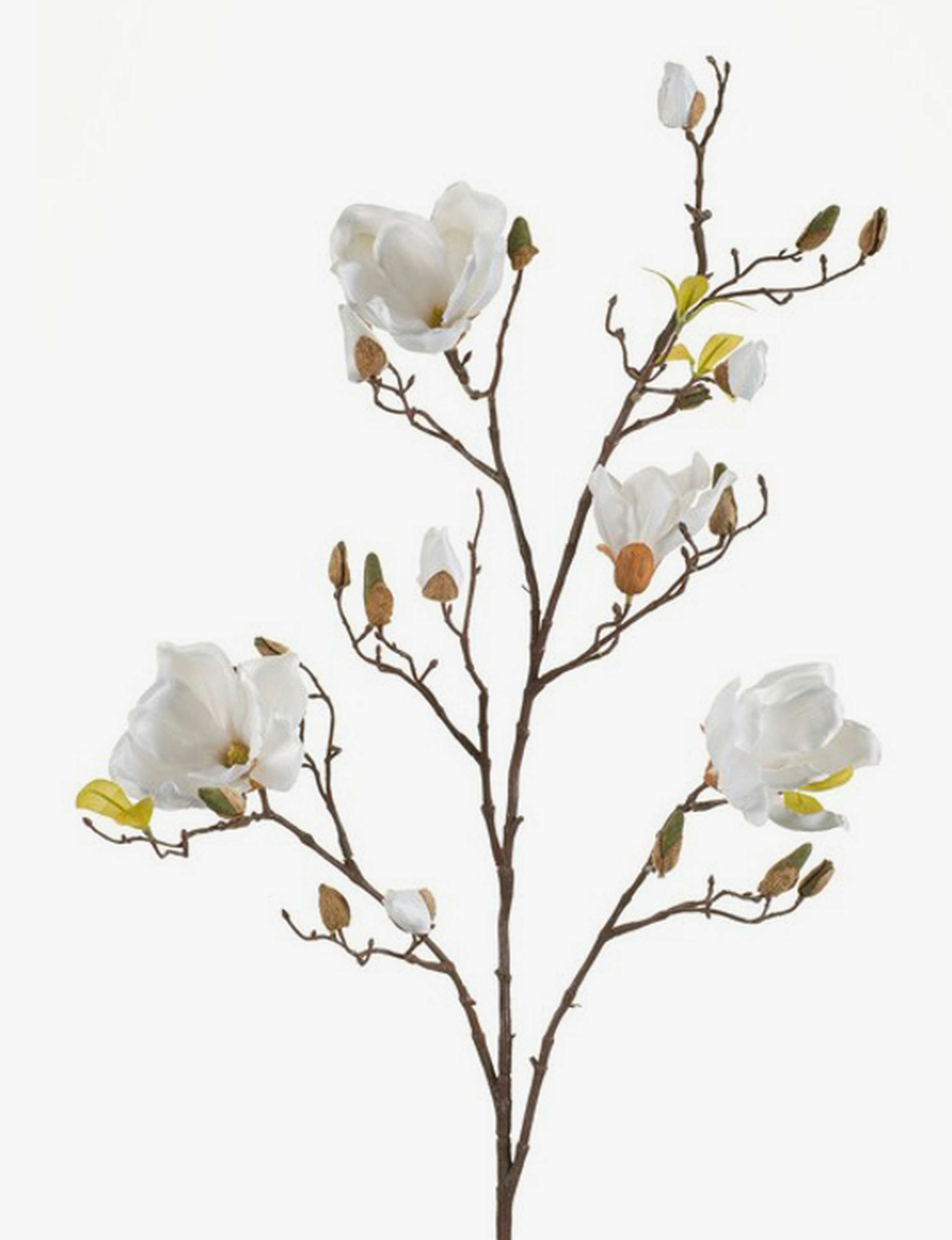 Intricately crafted silk Magnolia spray LILO with 4 blooms and buds in colour cream-white with a length of approx. 4ft/110 cm. The decorative spray has many small green textile leaflets.