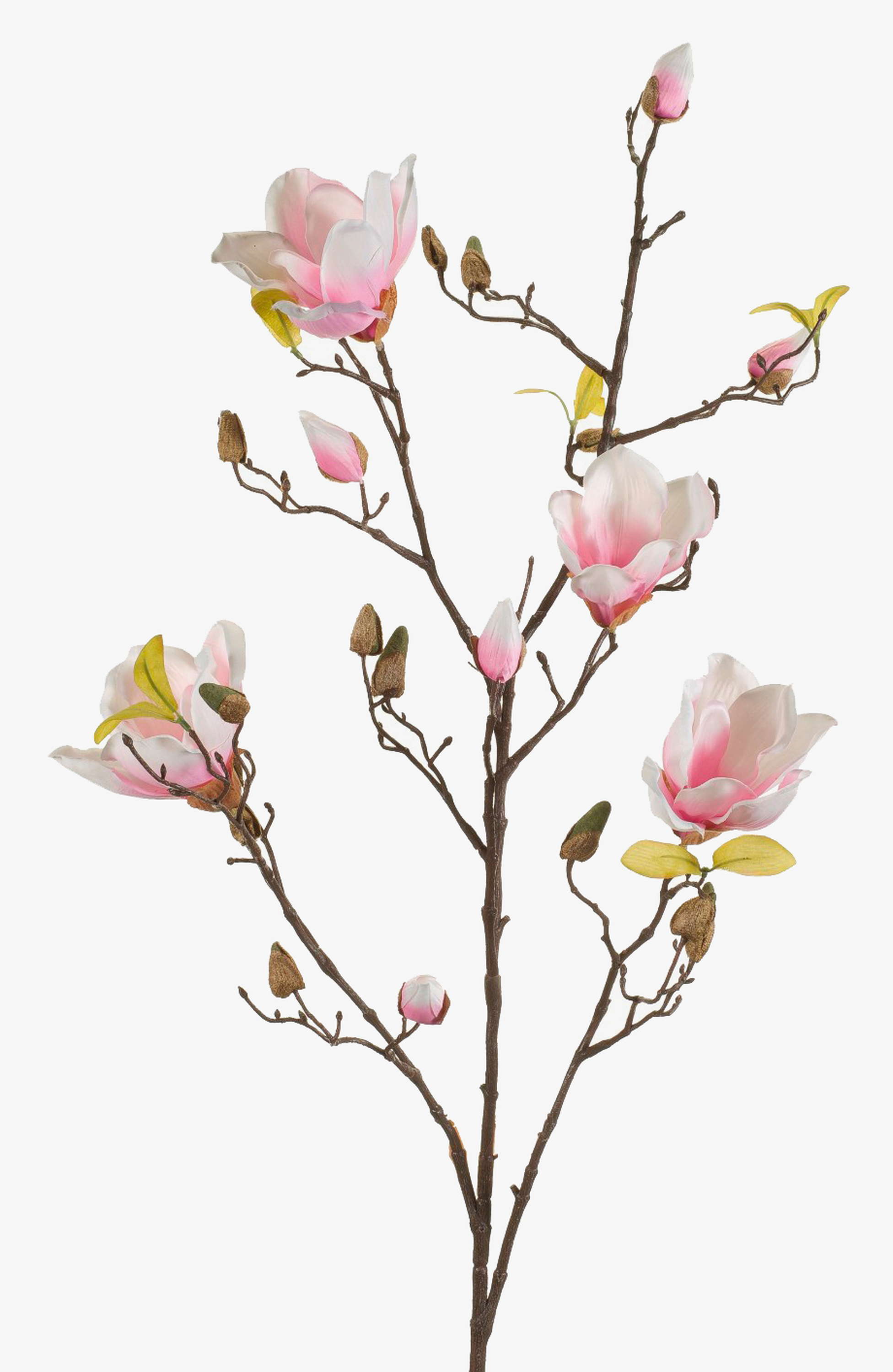 Intricately crafted Magnolia spray LILO with 4 blooms and buds in colour light pink with a length of approx. 4ft/110 cm. The decorative spray has many small green textile leaves.
