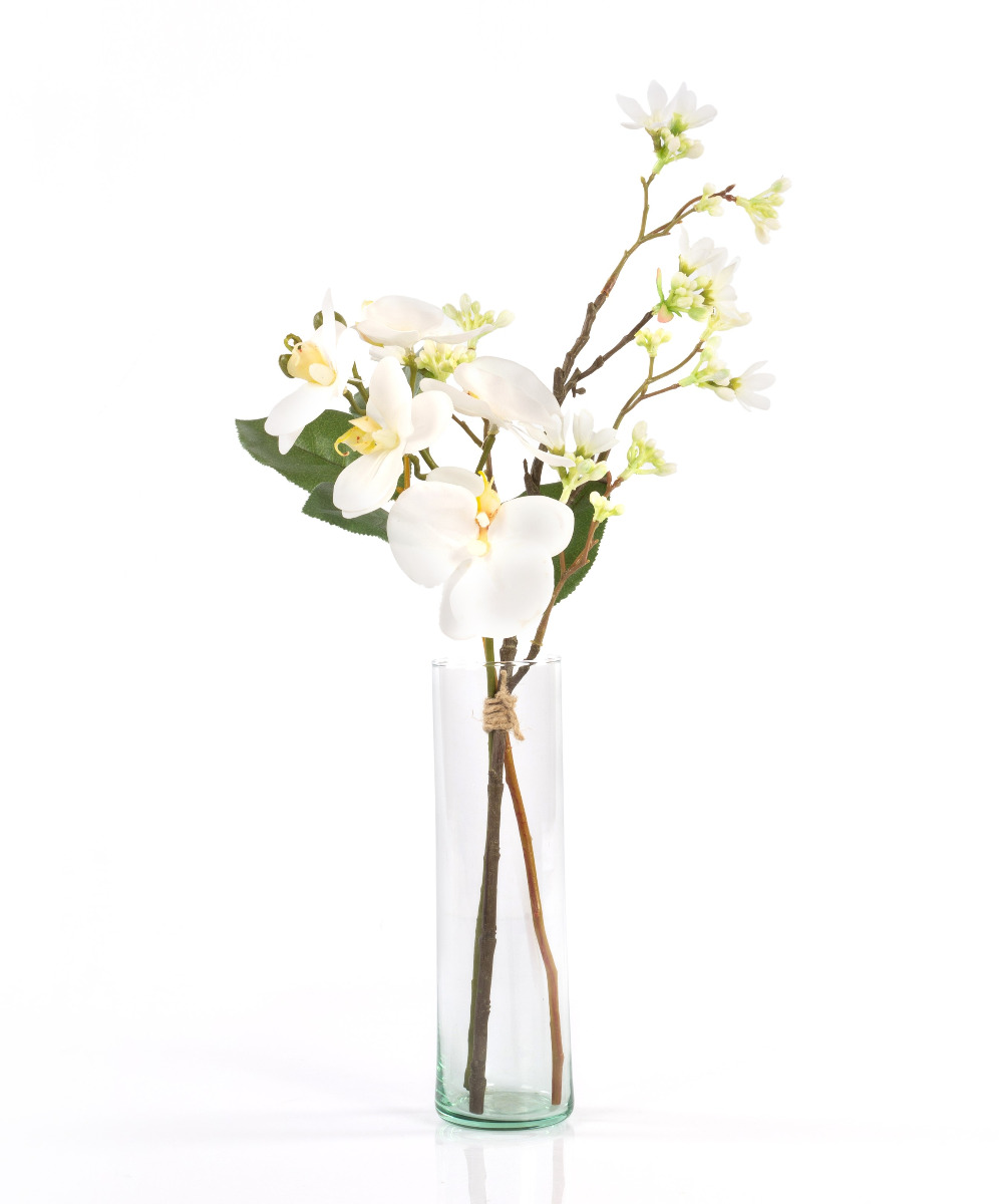 Hand-tied in Germany, this artificial bouquet ANOUK consists of a Dendrobium Sonia orchid branch, Seven son flower of Zhejiang and apple leaf branch. The extravagant bouquet will decorate pretty much any cupboard or table with its dainty style. The flower ensemble can also be wonderfully expanded into a lush bouquet, simply add more ANOUK bouquets to your liking.
