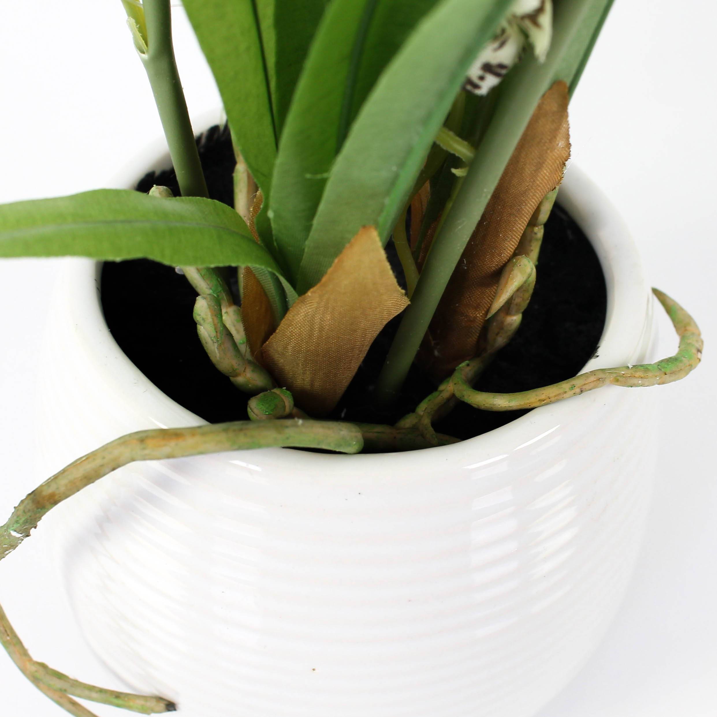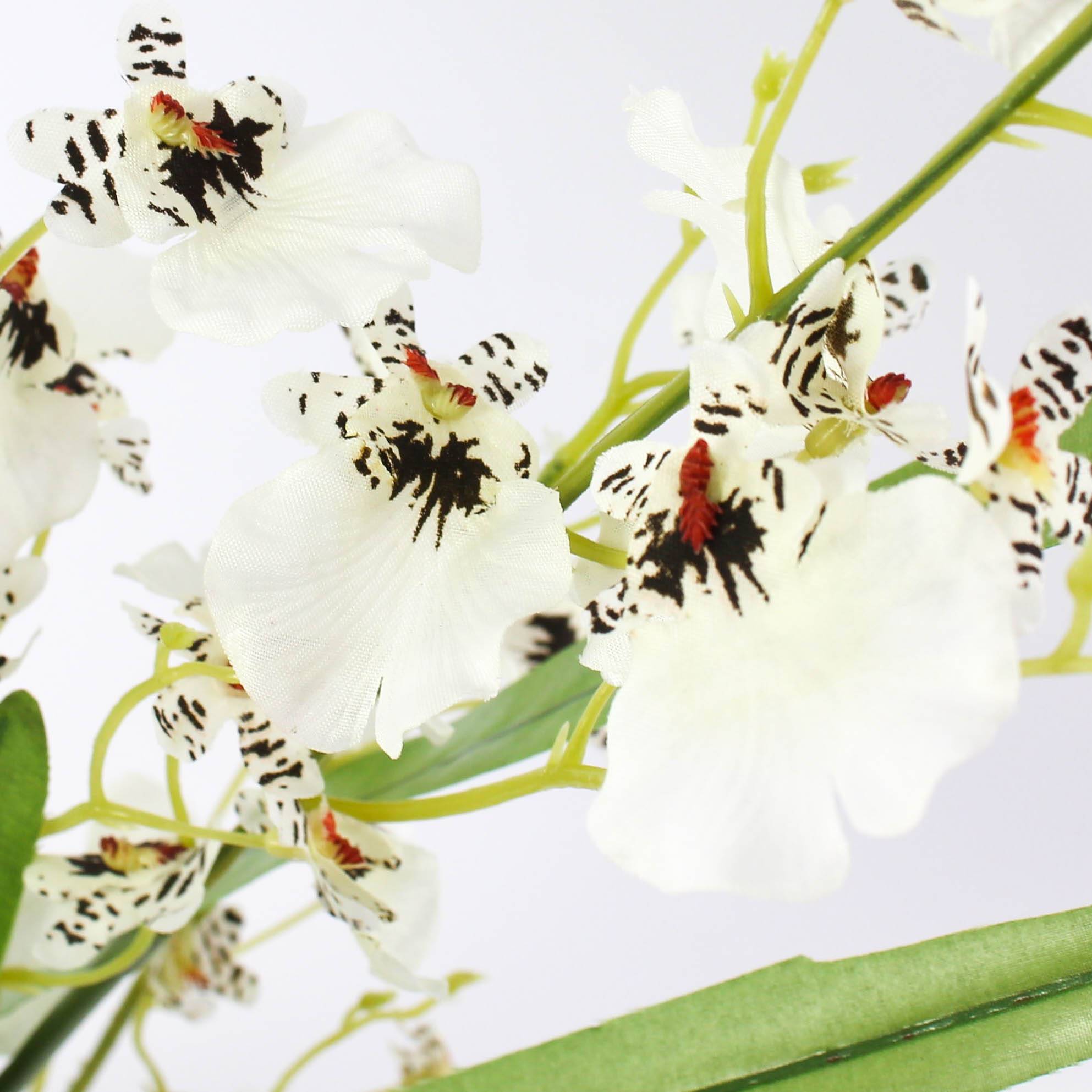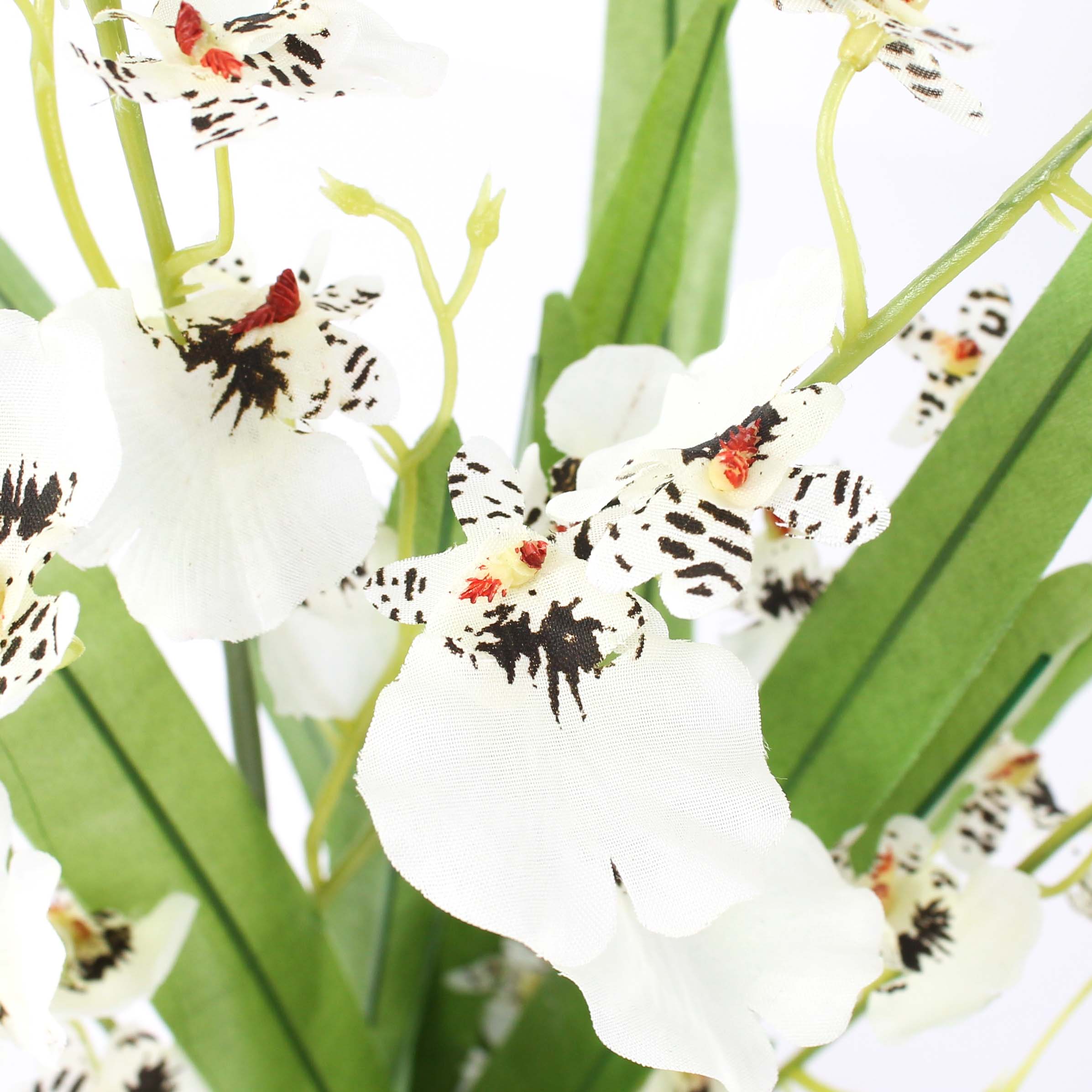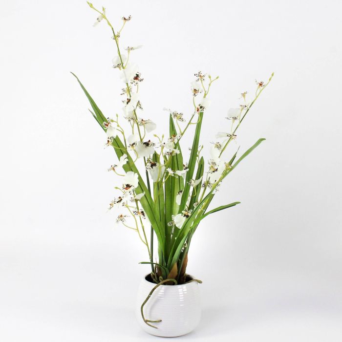 Small and beautiful artificial Orchid Oncidium SHANIA has 2 twigs with white/brown-coloured blossoms. This Orchid is in a pot of ceramic and has a total height of approx. 20"/50 cm.