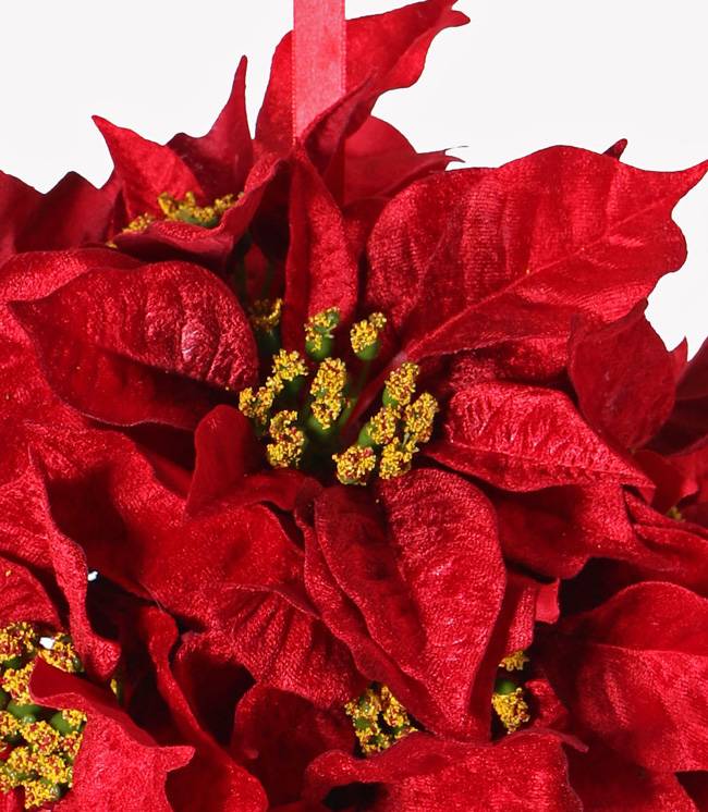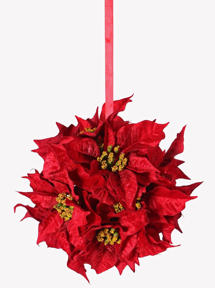 Fake poinsettia ball CATHLIN, red, Ø10"/25cm