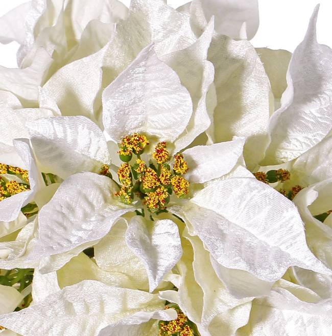 Fake poinsettia ball CATHLIN, white, Ø10"/25cm