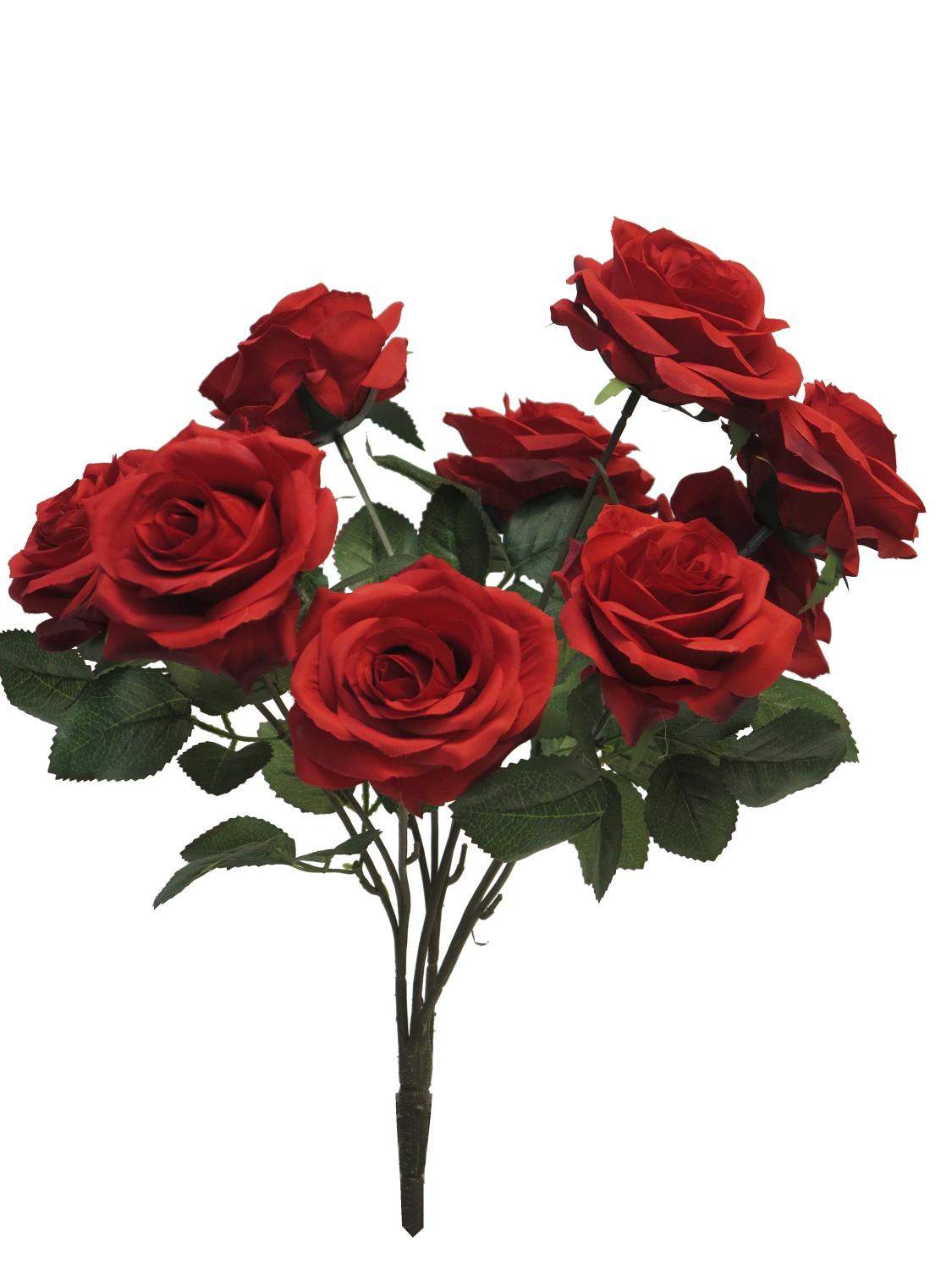 Fake rose bush KAILIN on spike, red, 16"/40cm