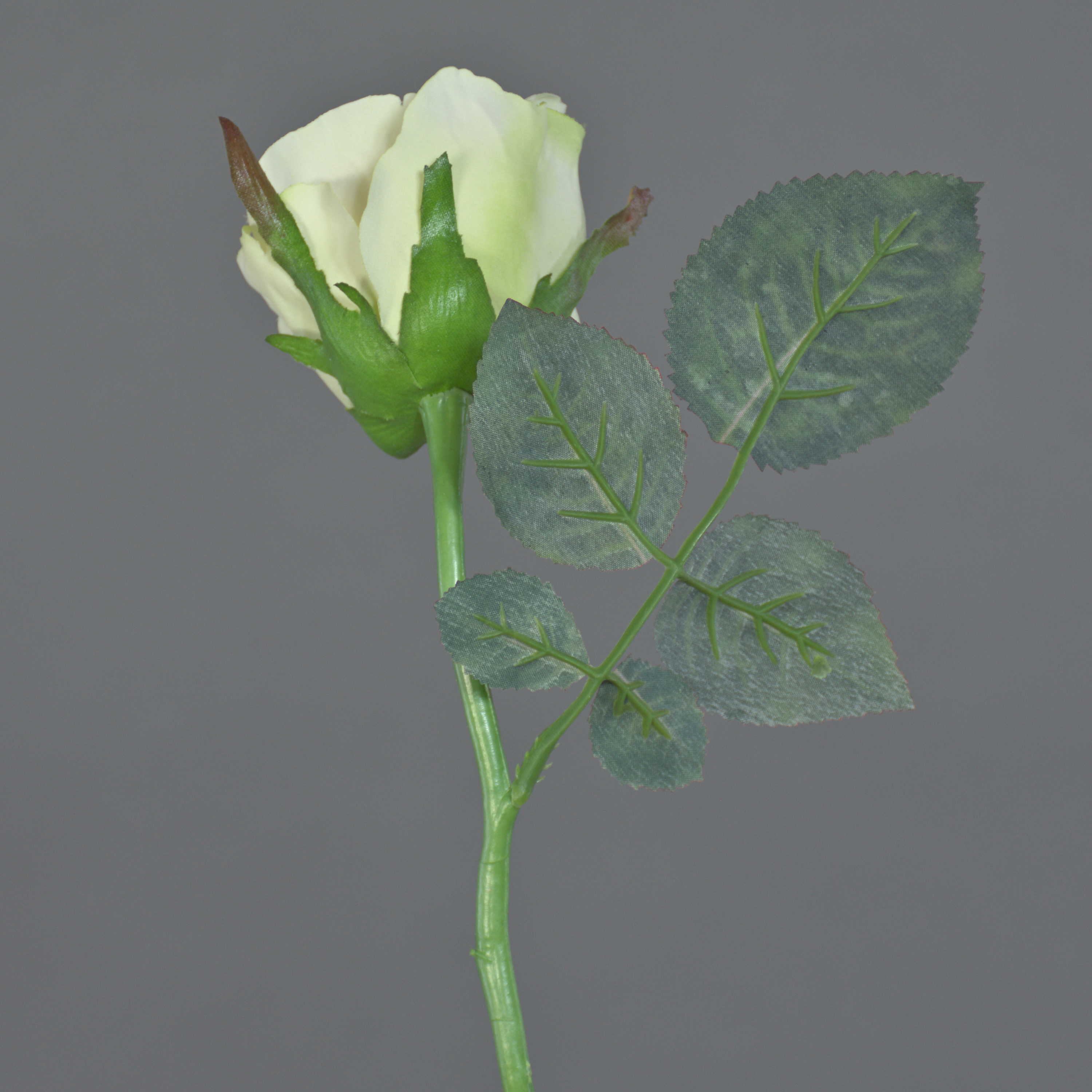 Lovely artificial Rose ELLI with a cream and rose-coloured bloom and green leaves of textile material. The artificial mini Rose measures approx. 12"/30 cm in length and has a flower diameter of approx. 2.4"/6 cm.