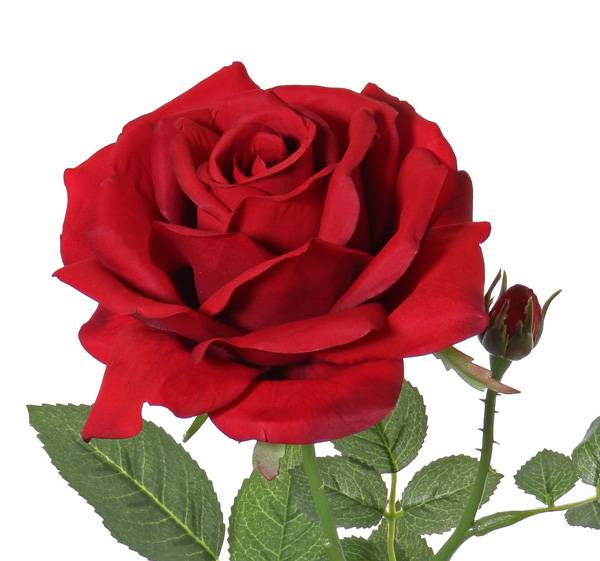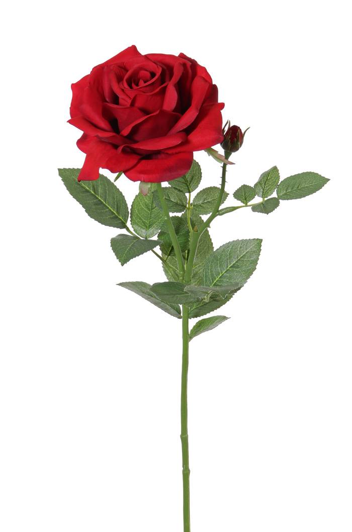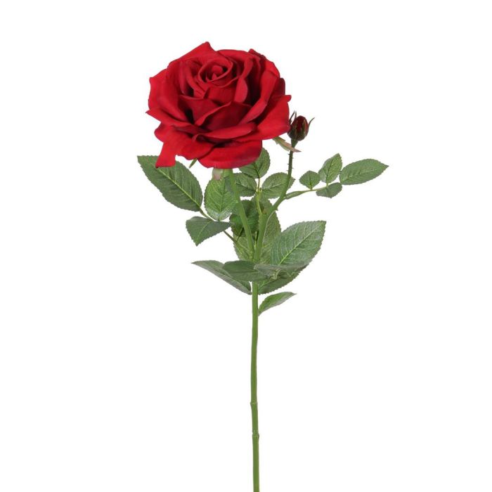 The artificial rose JANINE is adorned with one flower and one bud in colour red. It will decorate alone or mixed in a single stem vase your living area. The false rose has a total length of approx. 28"/70 cm.