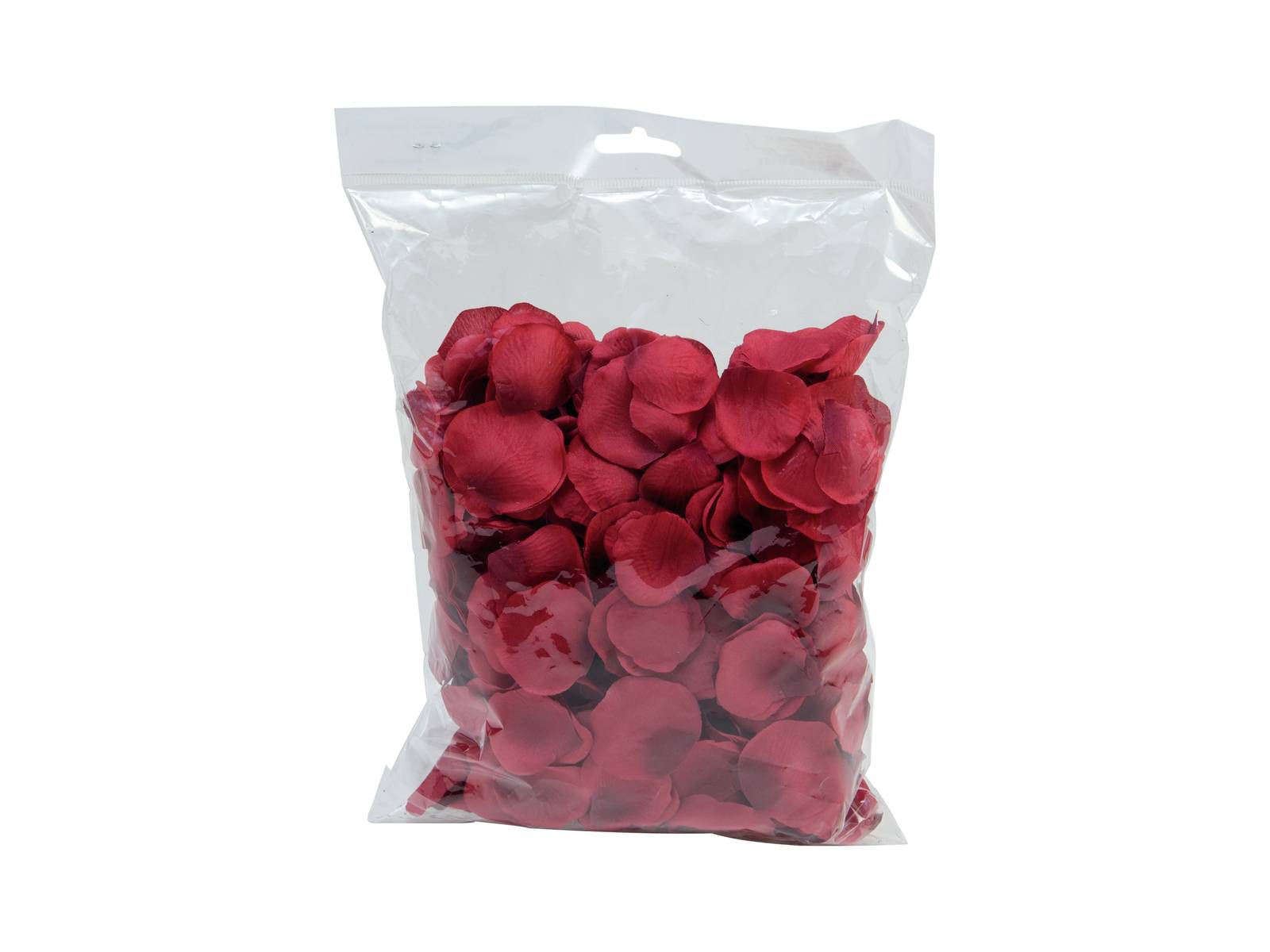 500 artificial rose petals MEGGIE in colour red with natural colour gradient. The deco-confetti crafted from textile fibre is supplied in a cellophane bag.