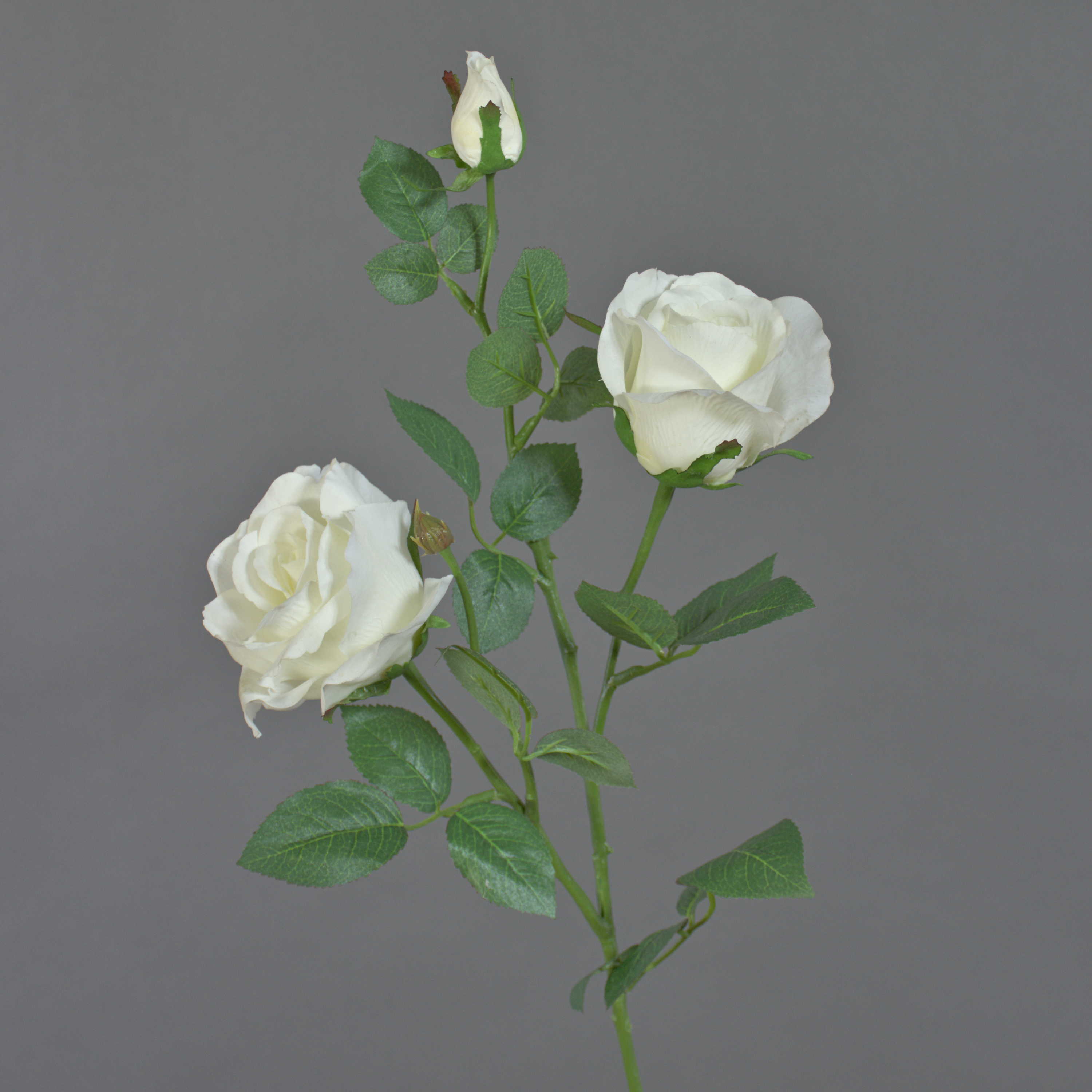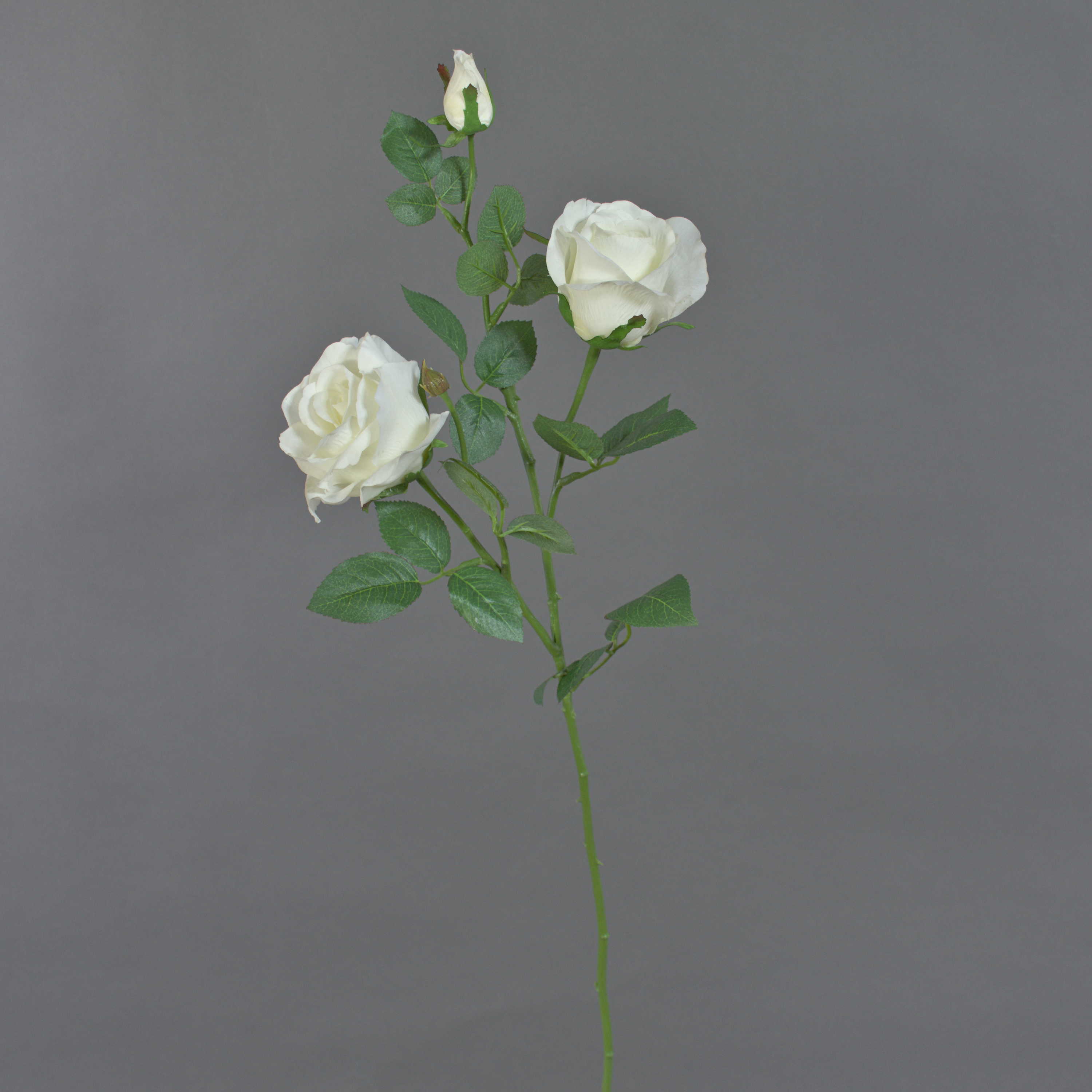 Fake rose spray ARIANE, white, 30"/75cm, Ø2.8"-4"/7-10cm