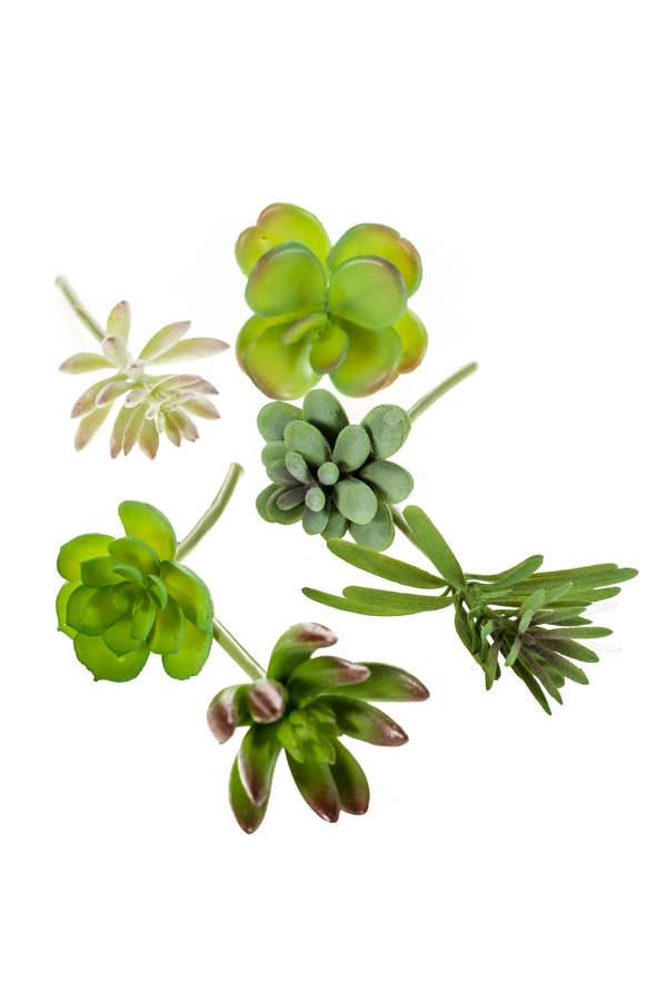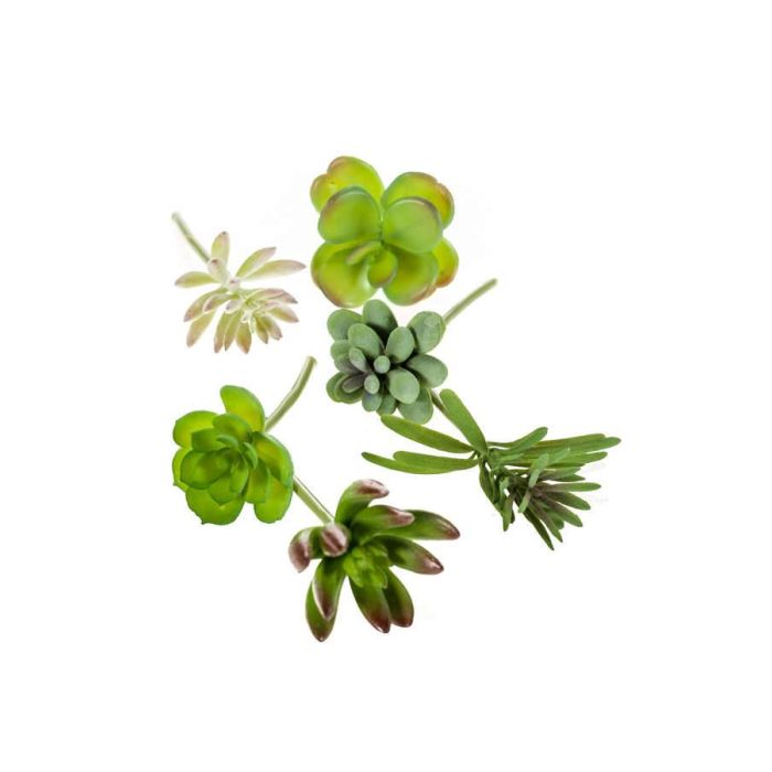 JADON is a set of different artificial succulents (crassula, graptopetalum, aeonium, echeveria, peperomia ferreyrae, pachyphytum hookeri). The spikes enable creative decoration ideas, because you can arrange the small artificial plants individually or together in pots, bowls or tubs.