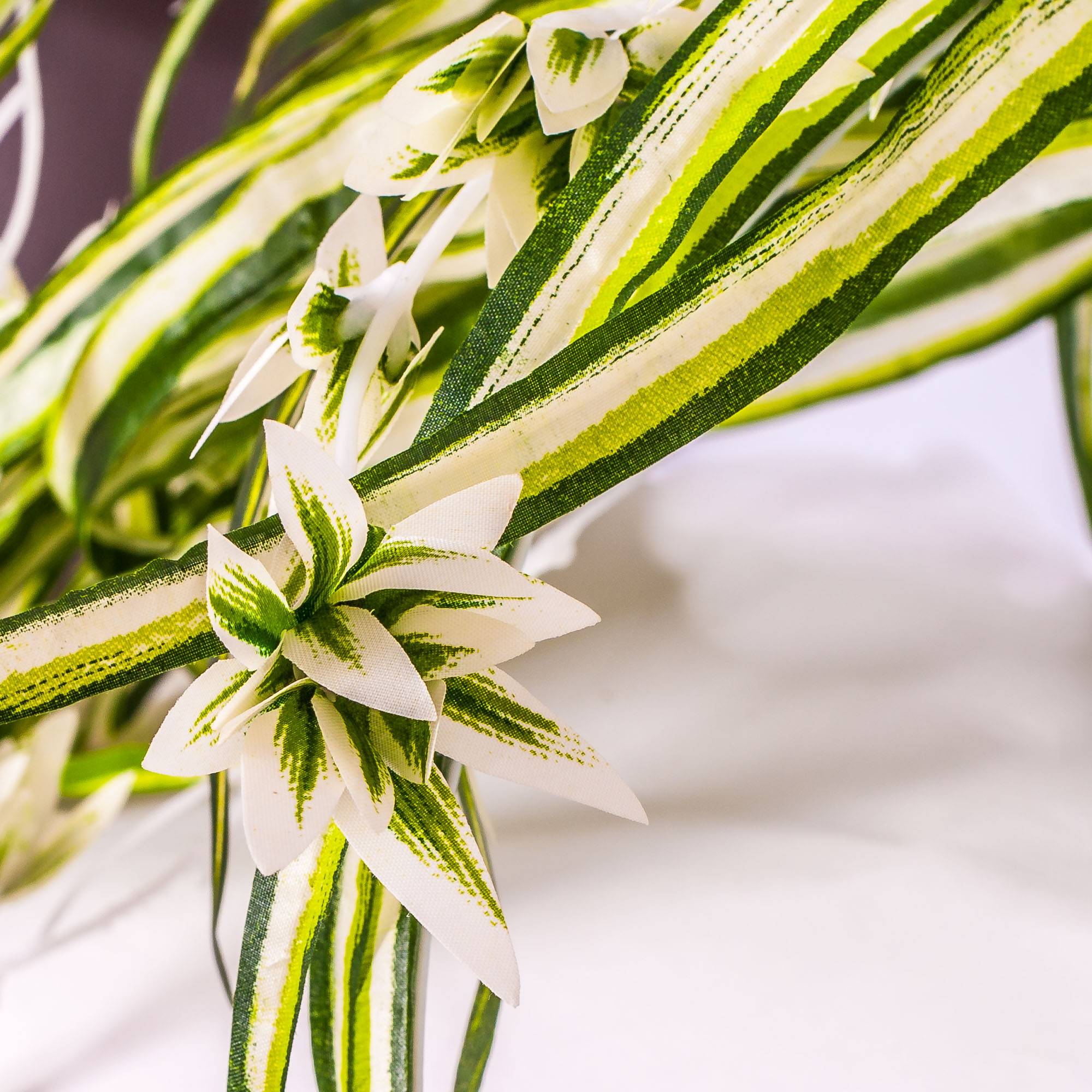 - with many differently long leaves and leaf shoots, colour green-white striped from high-quality textile material