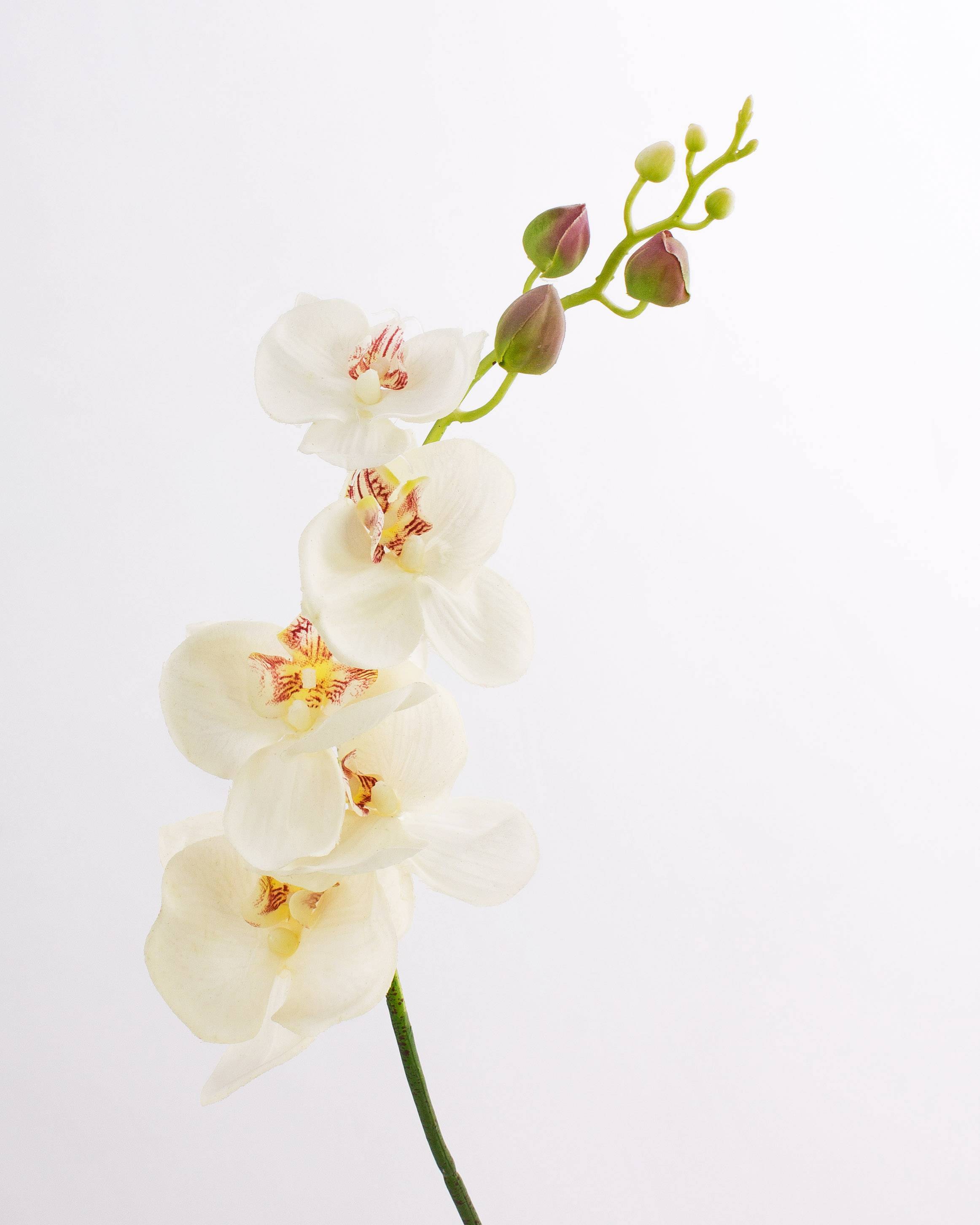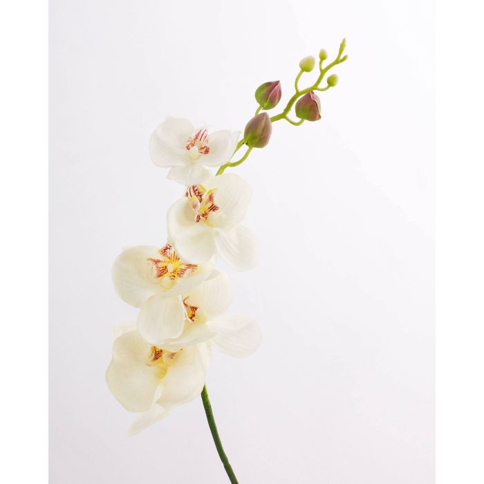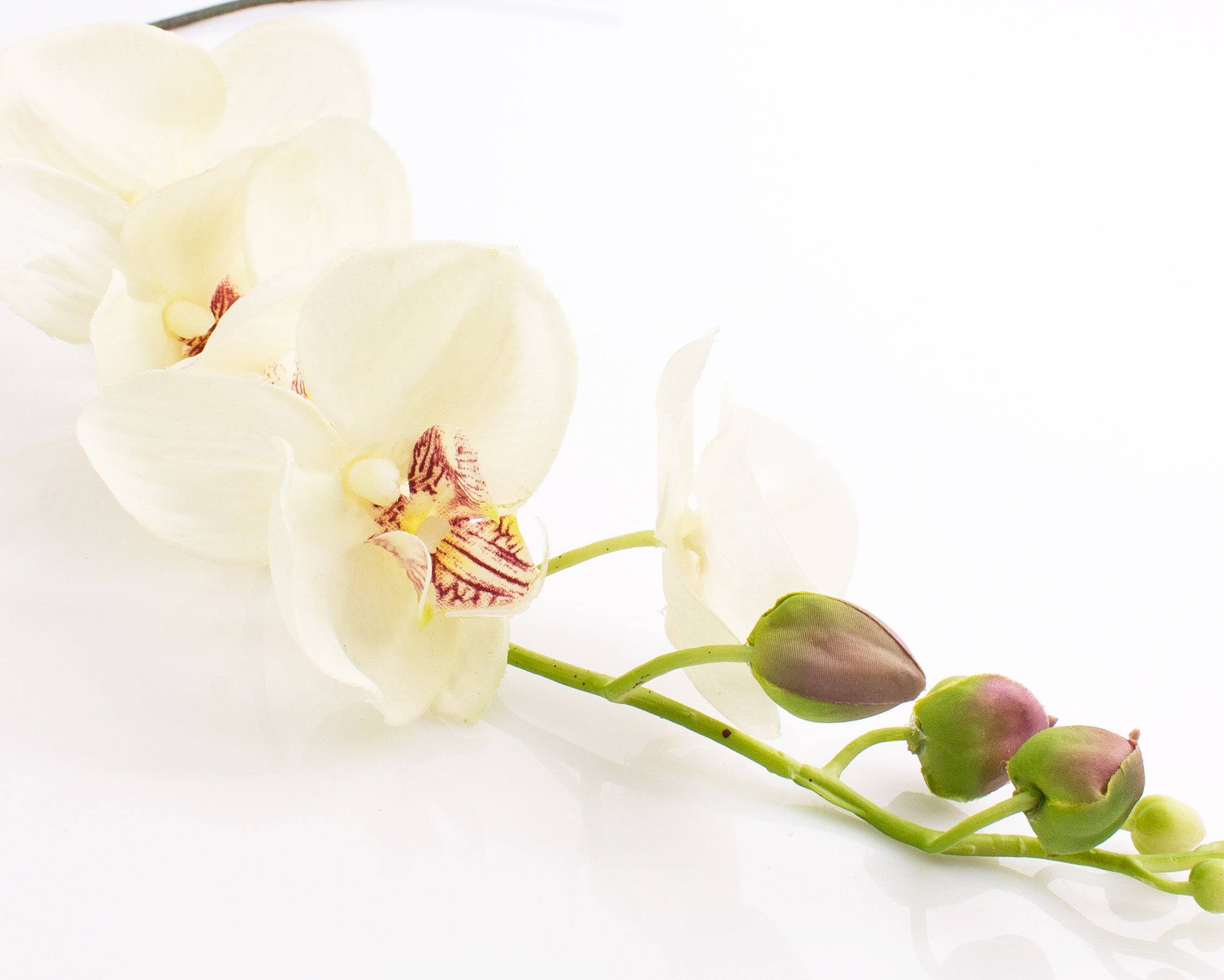 Artificial Sprig of Orchid Phalaenopsis with 5 blossoms in cream-white and 6 buds. The fake Sprig has a total length of approx. 3ft/90 cm and not only looks incredibly real, but also feels like it (real touch).