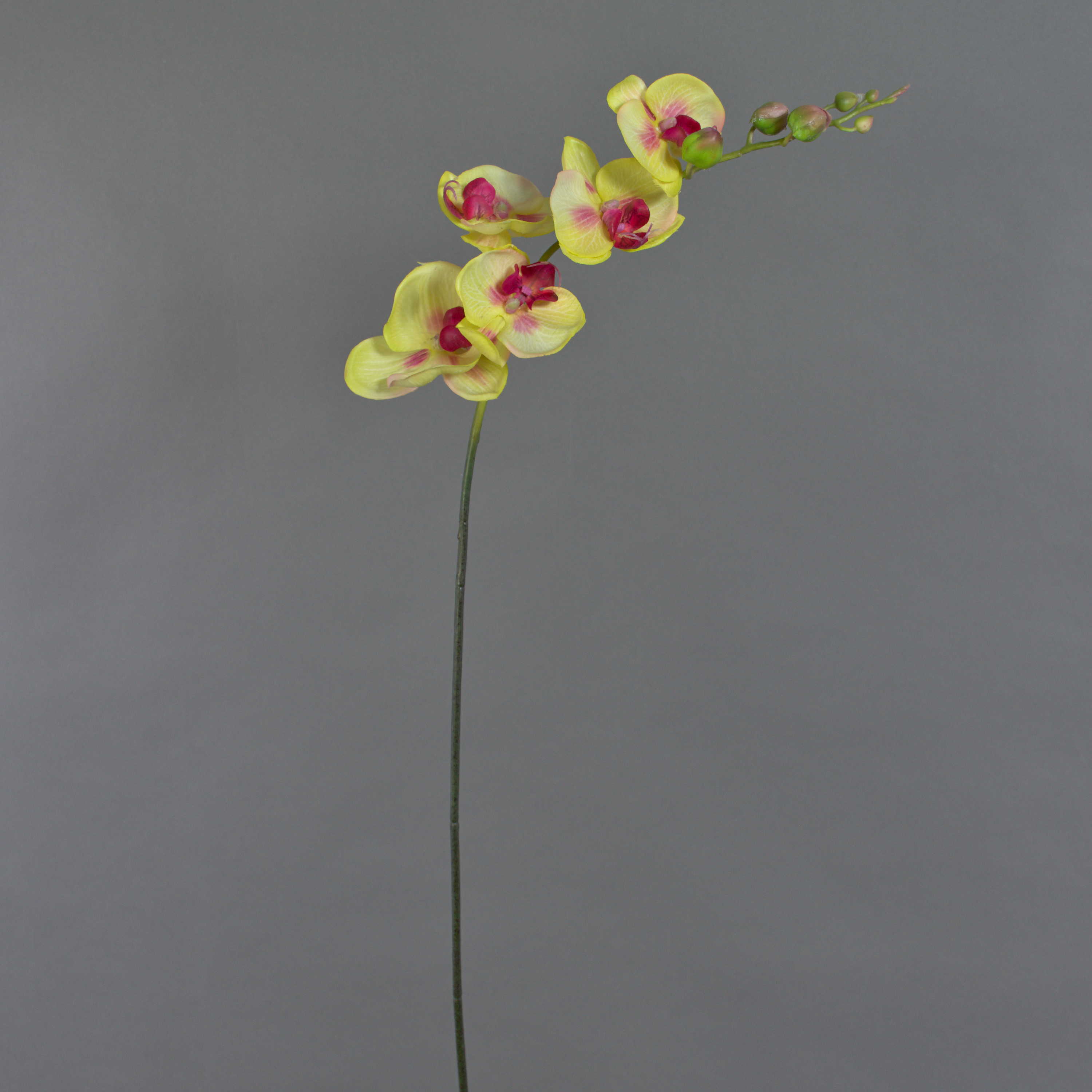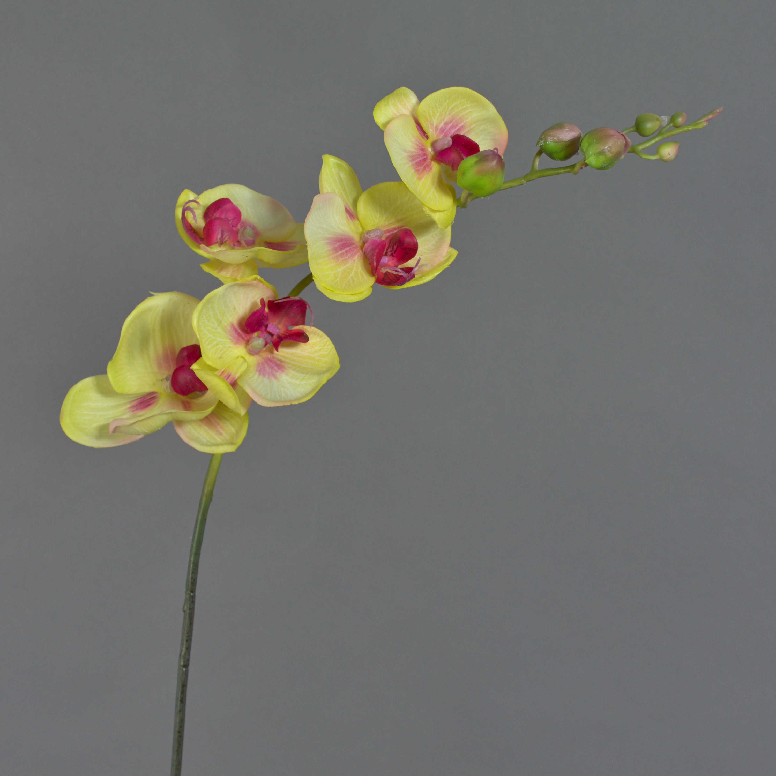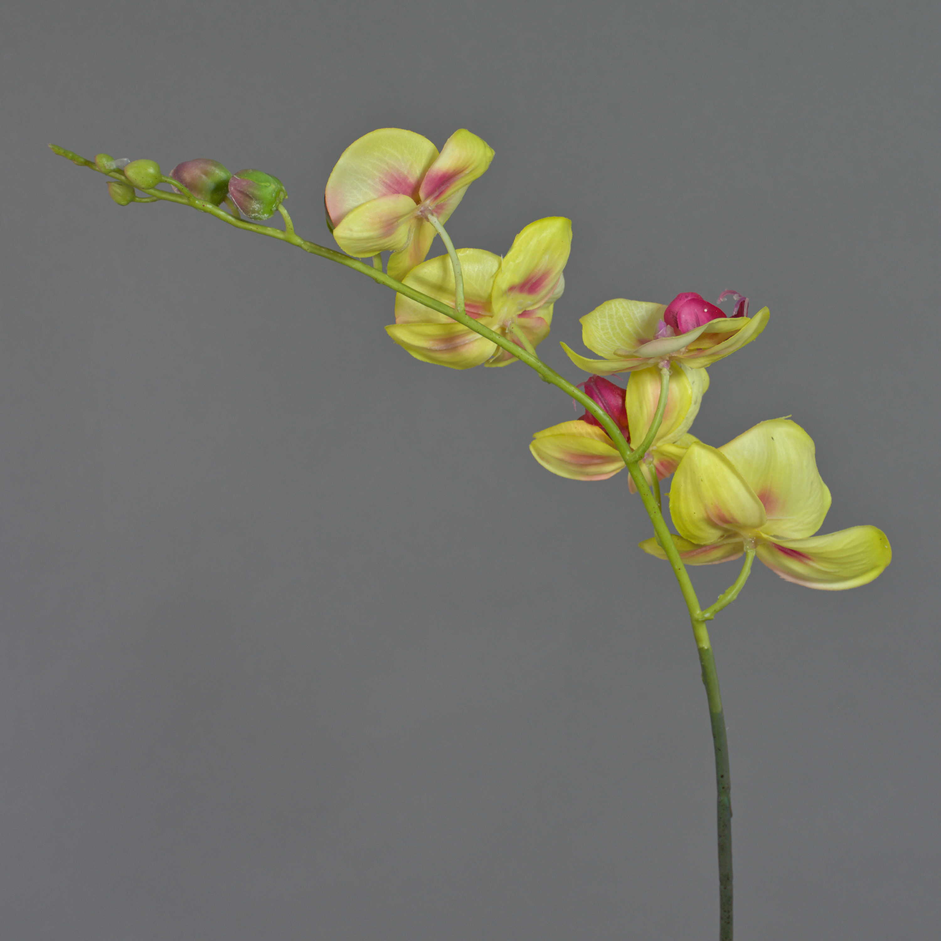 Artificial Sprig of Orchid Phalaenopsis with 5 blossoms in yellow-pink and 6 buds. The fake Sprig has a total length of approx. 3ft/90 cm and not only looks incredibly real, but also feels like it (real touch).