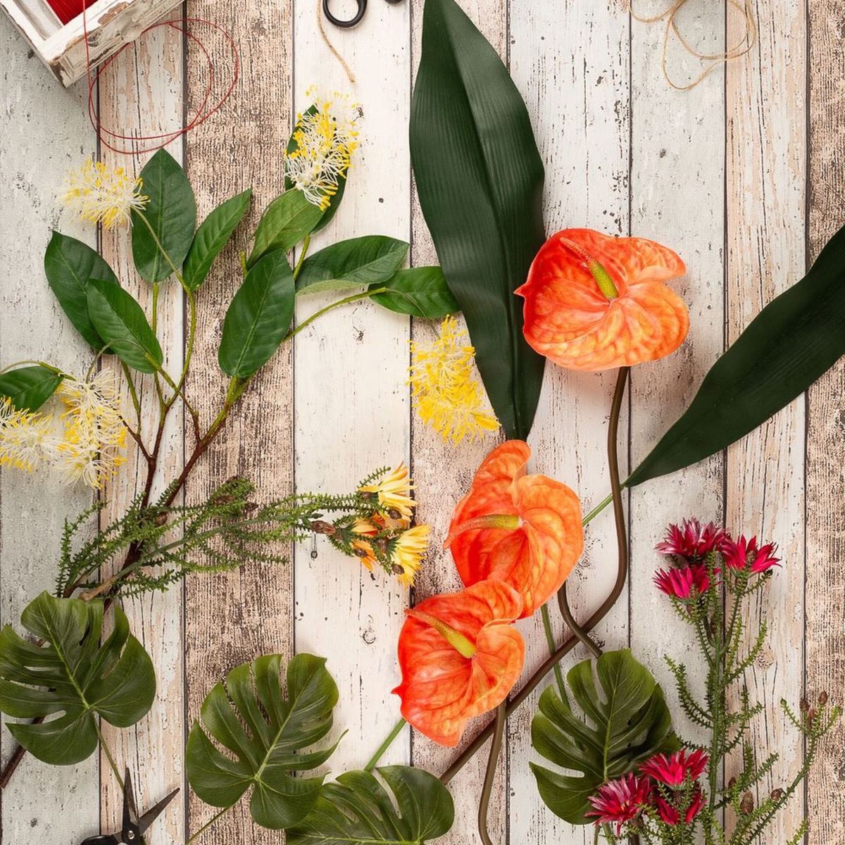 - Tied together with a sisal cord, the flowers and branches can be shortened individually or, after removing the cord, used separately for creative projects