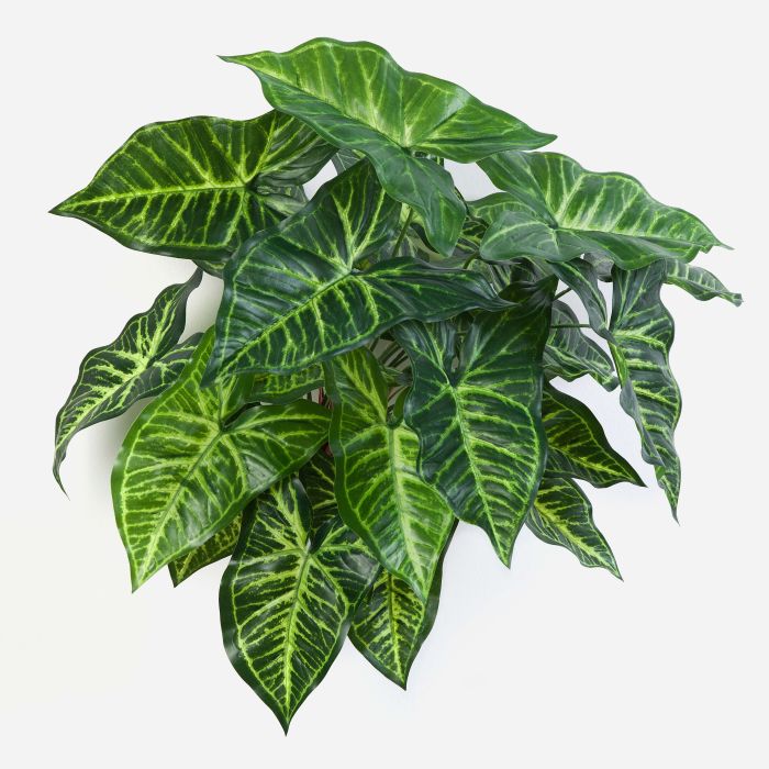 Artificial Syngonium SERENO (Nephthytis) will convince by the natural design of its approx. 27 leaves in the typical, pointed arrow shape. Hardly recognisable as artificial Syngonium, this plant will be an elegant decorative plant for everyone with its size of approx. 18"/45 cm.