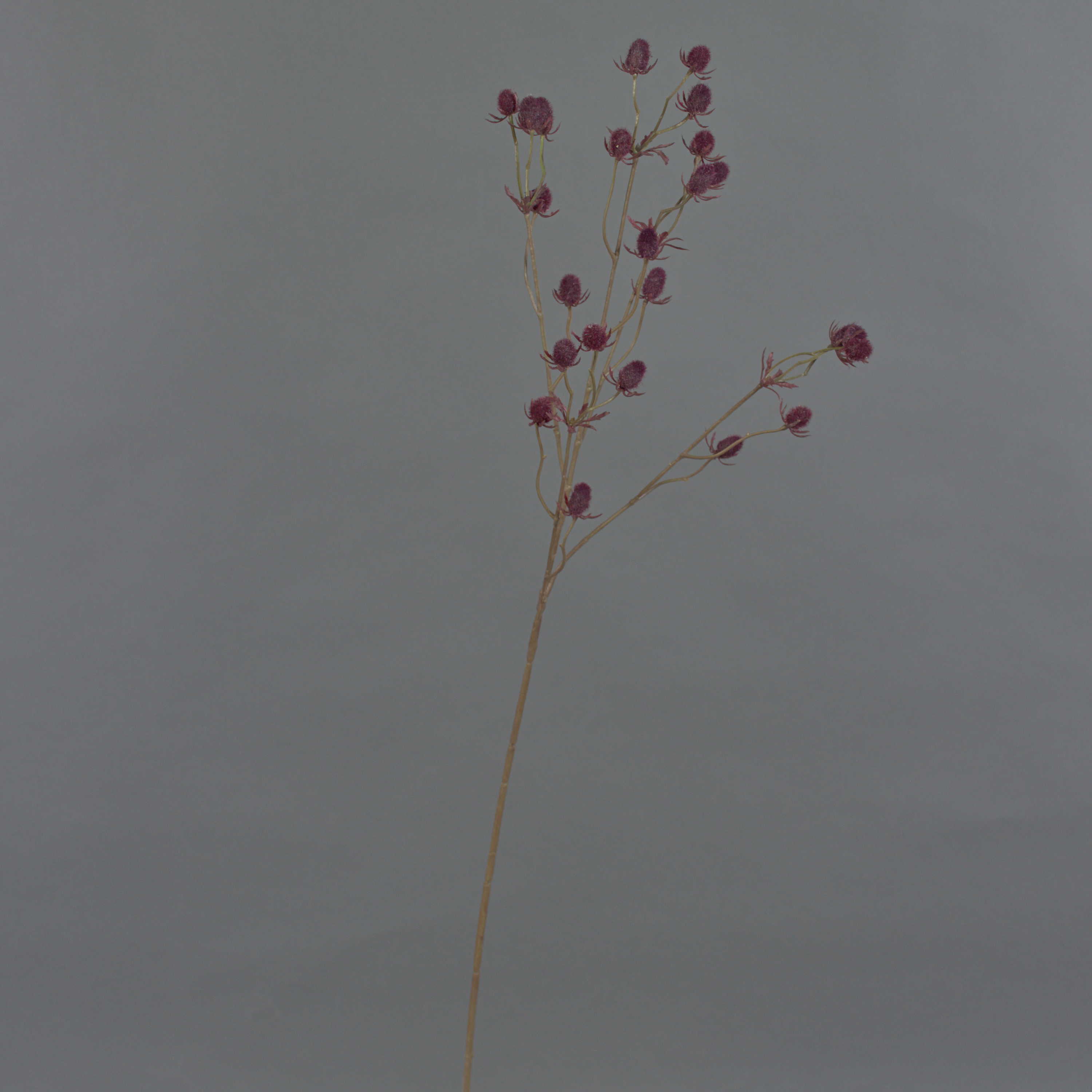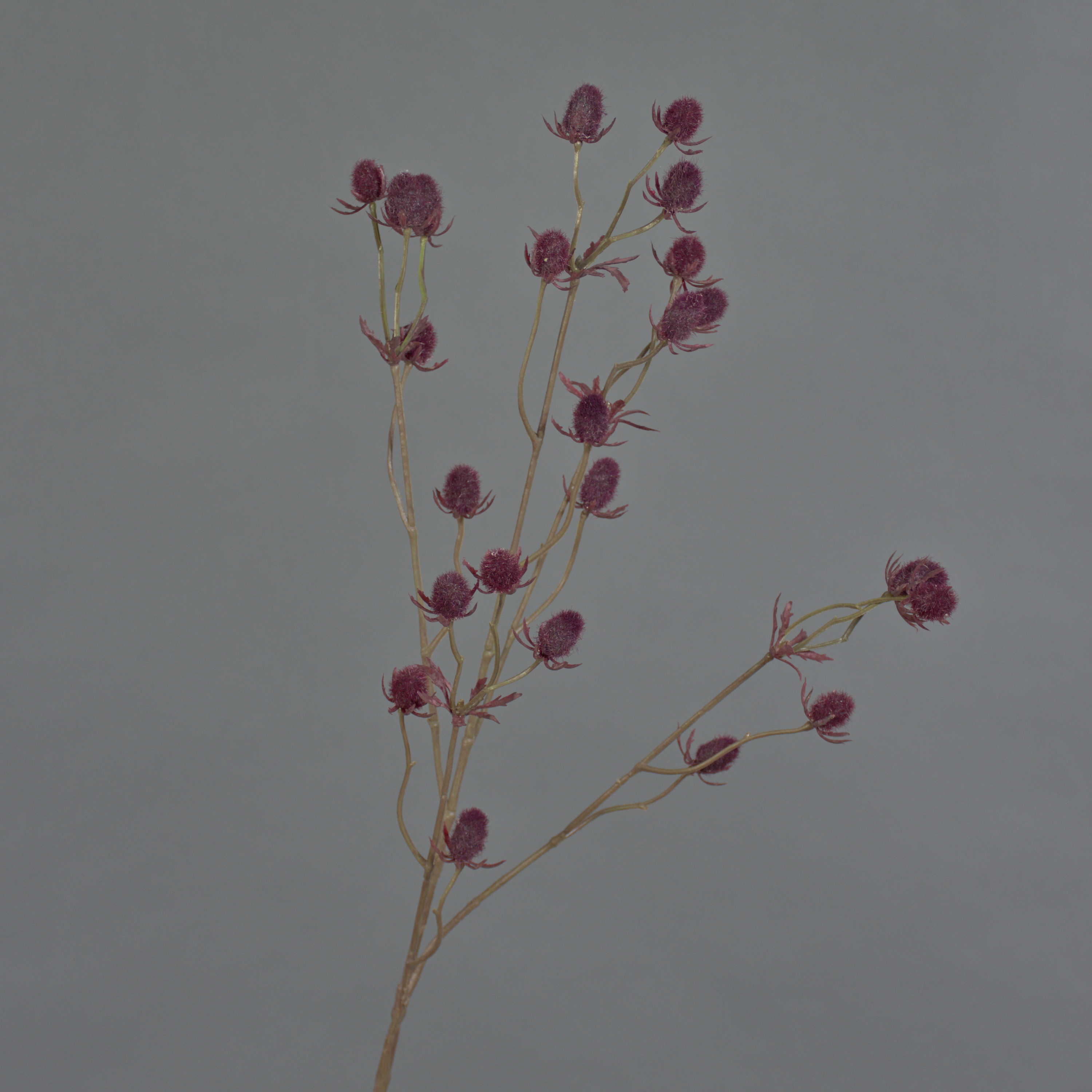 Fake thistle spray (Eryngium) LOUKAS, burgundy red, 28"/70cm, Ø0.6"/1,5cm