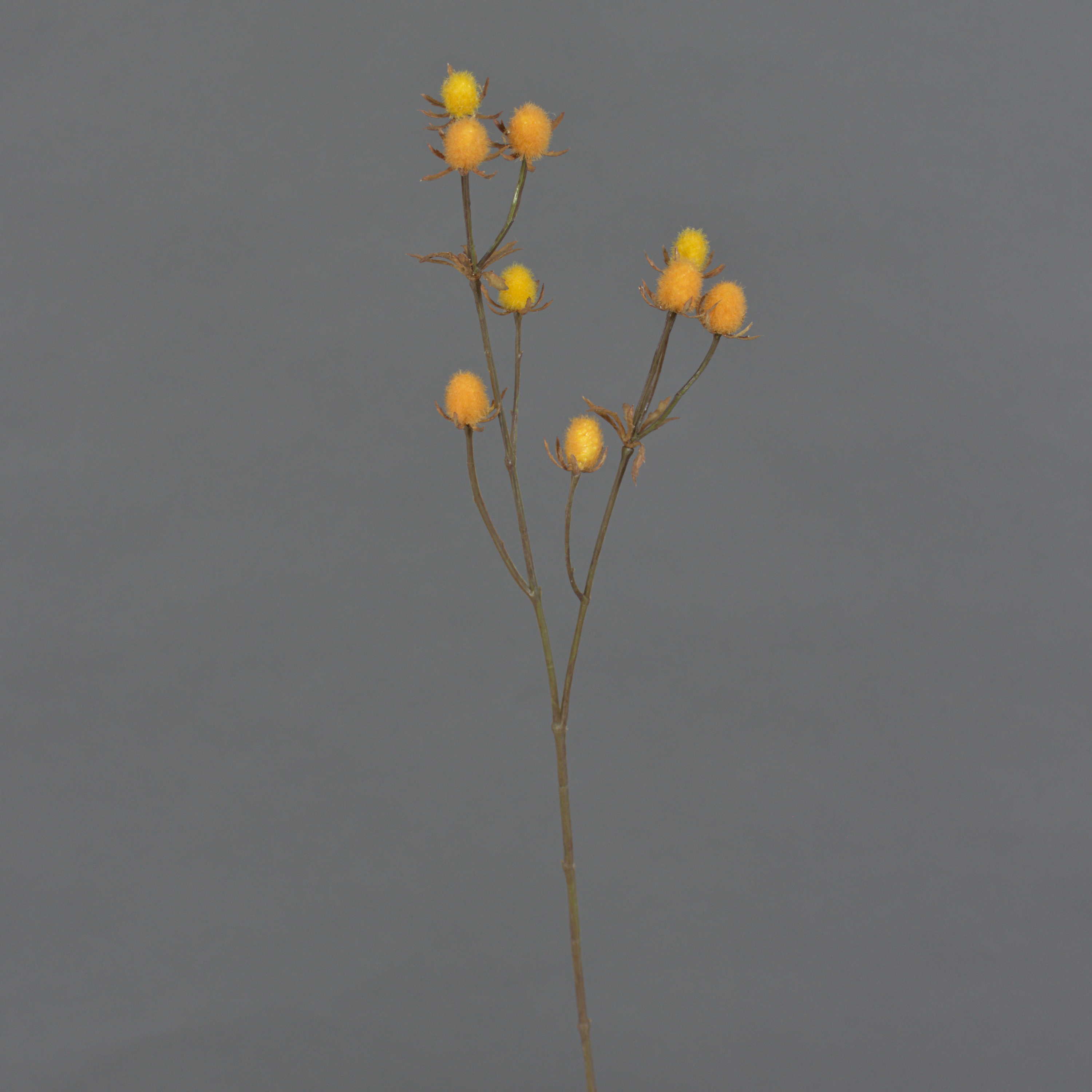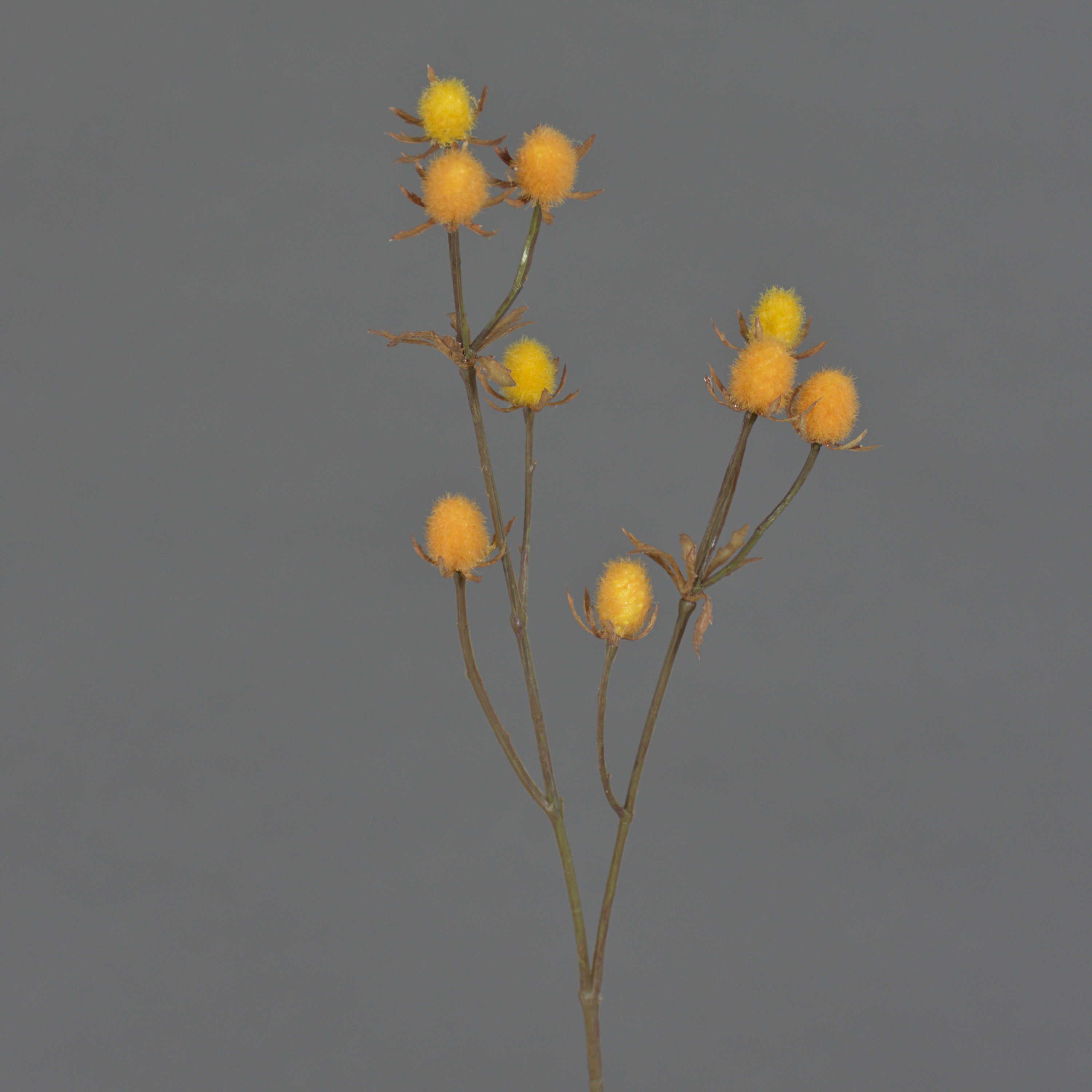 Fake thistle spray (Eryngium) LOUKAS, yellow-orange, 18"/45cm, Ø0.6"/1,5cm