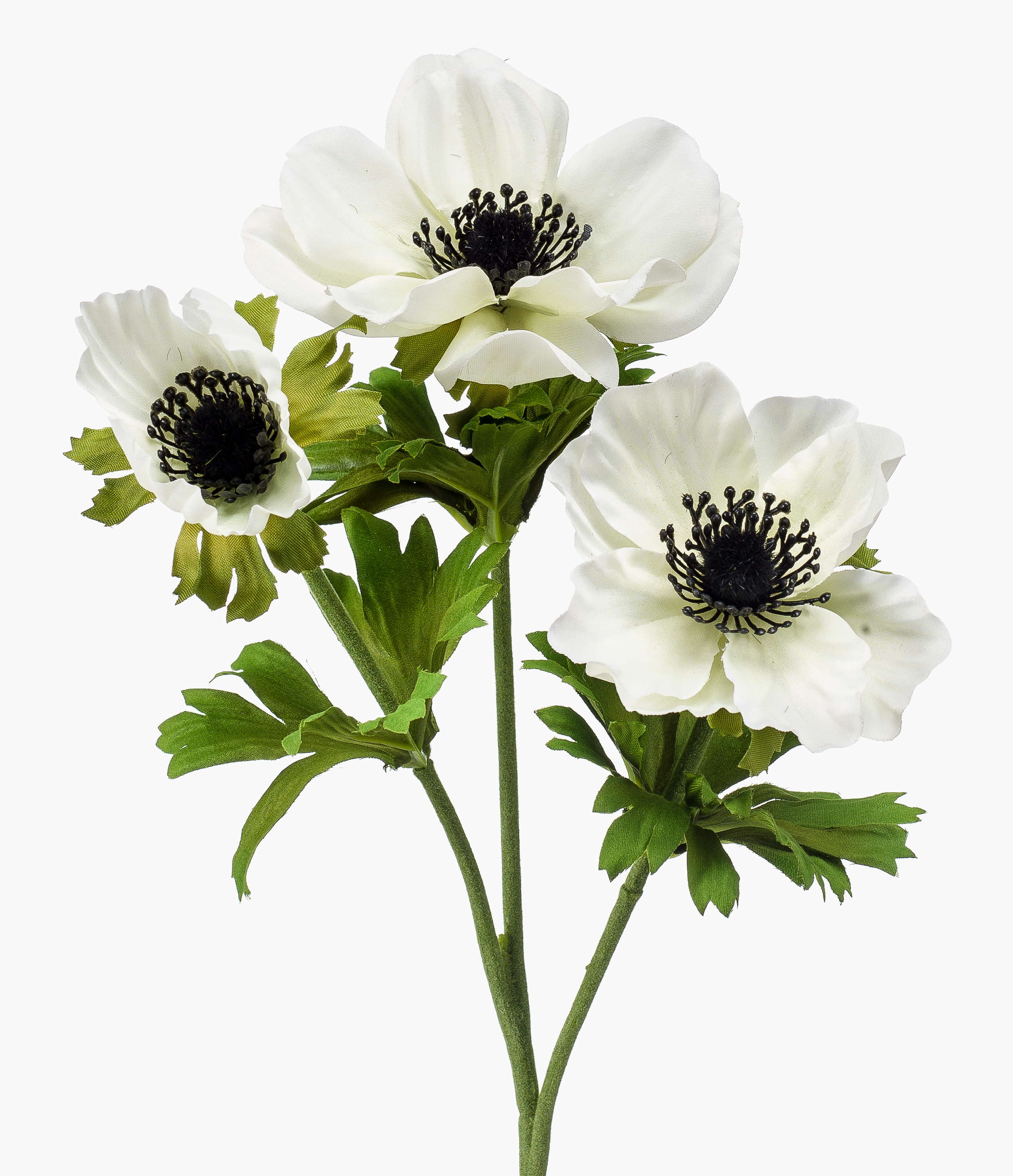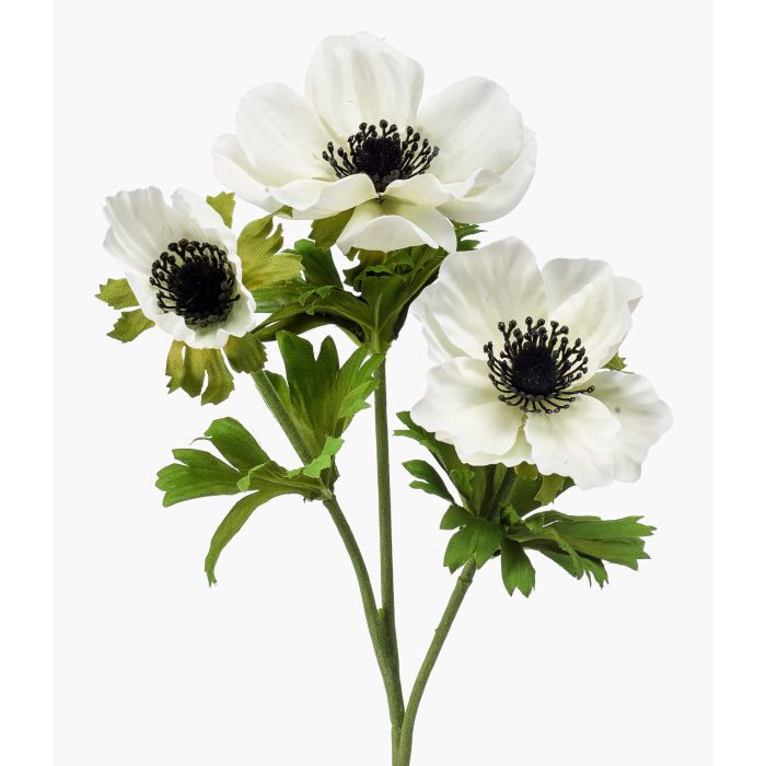 The artificial anemone RUBINA in colour white is attached to a stem and has a length of approx. 22"/55 cm.