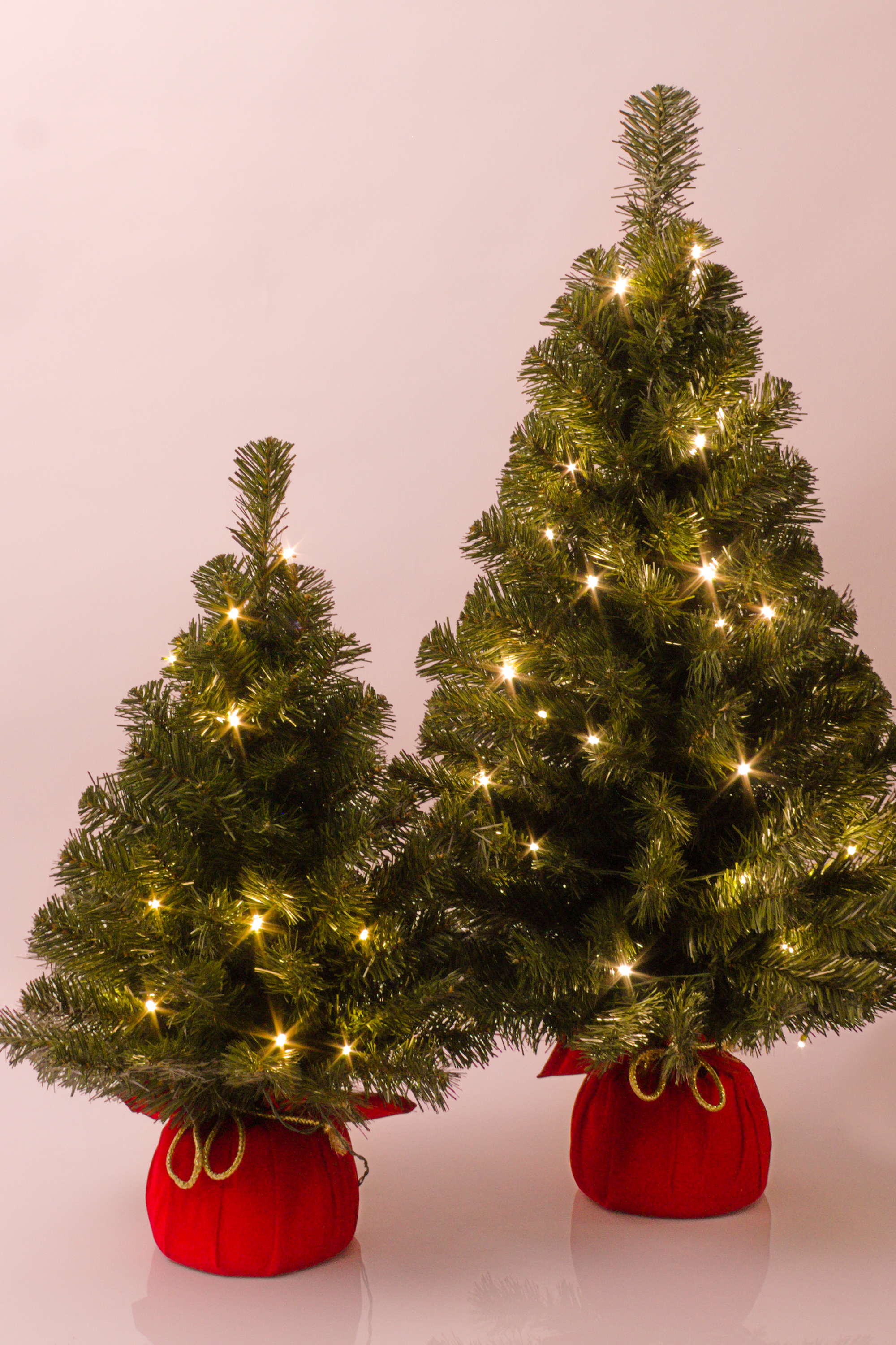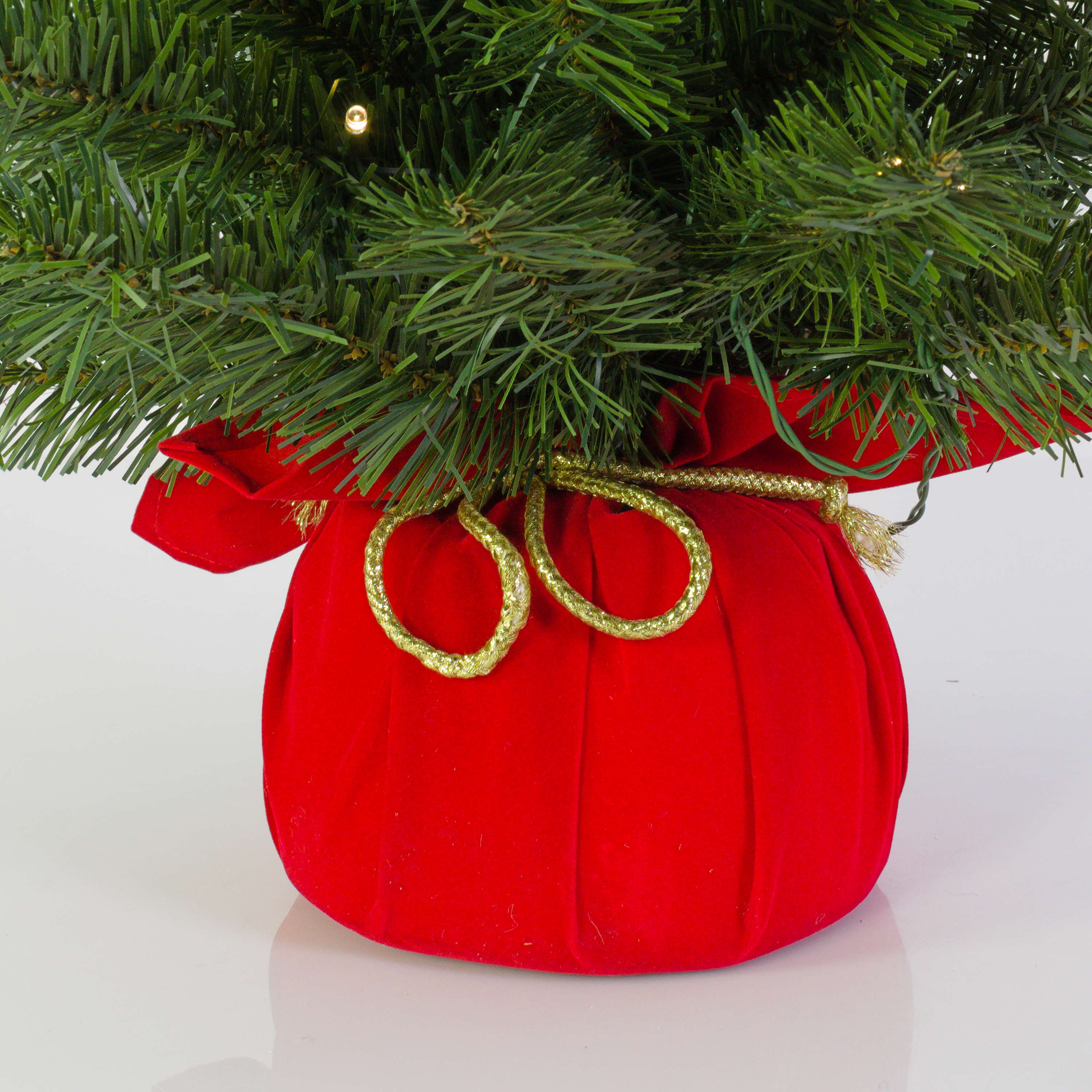 Fake Xmas tree WARSAW, jute bag in red, LEDs, 3ft/90cm, Ø 20"/50cm