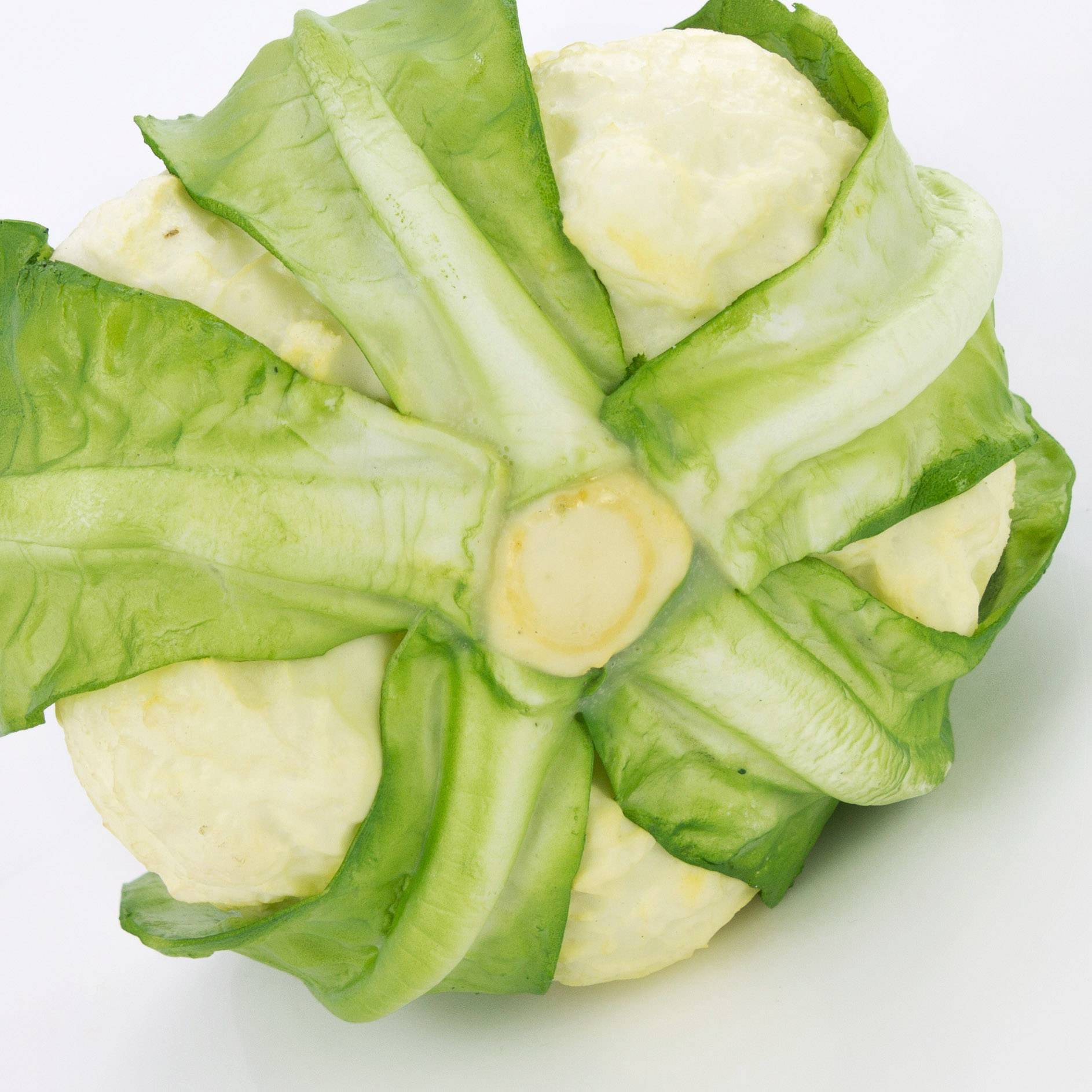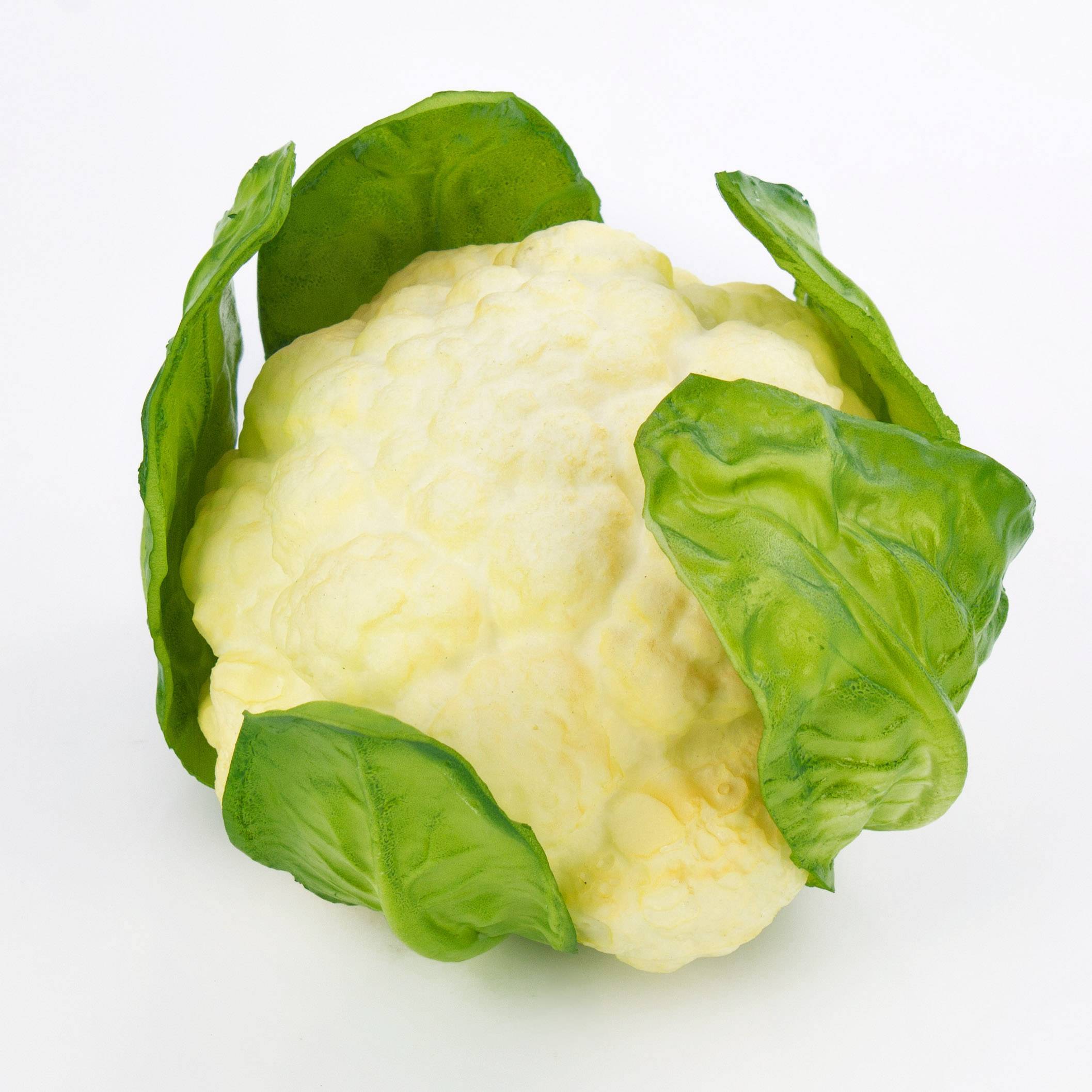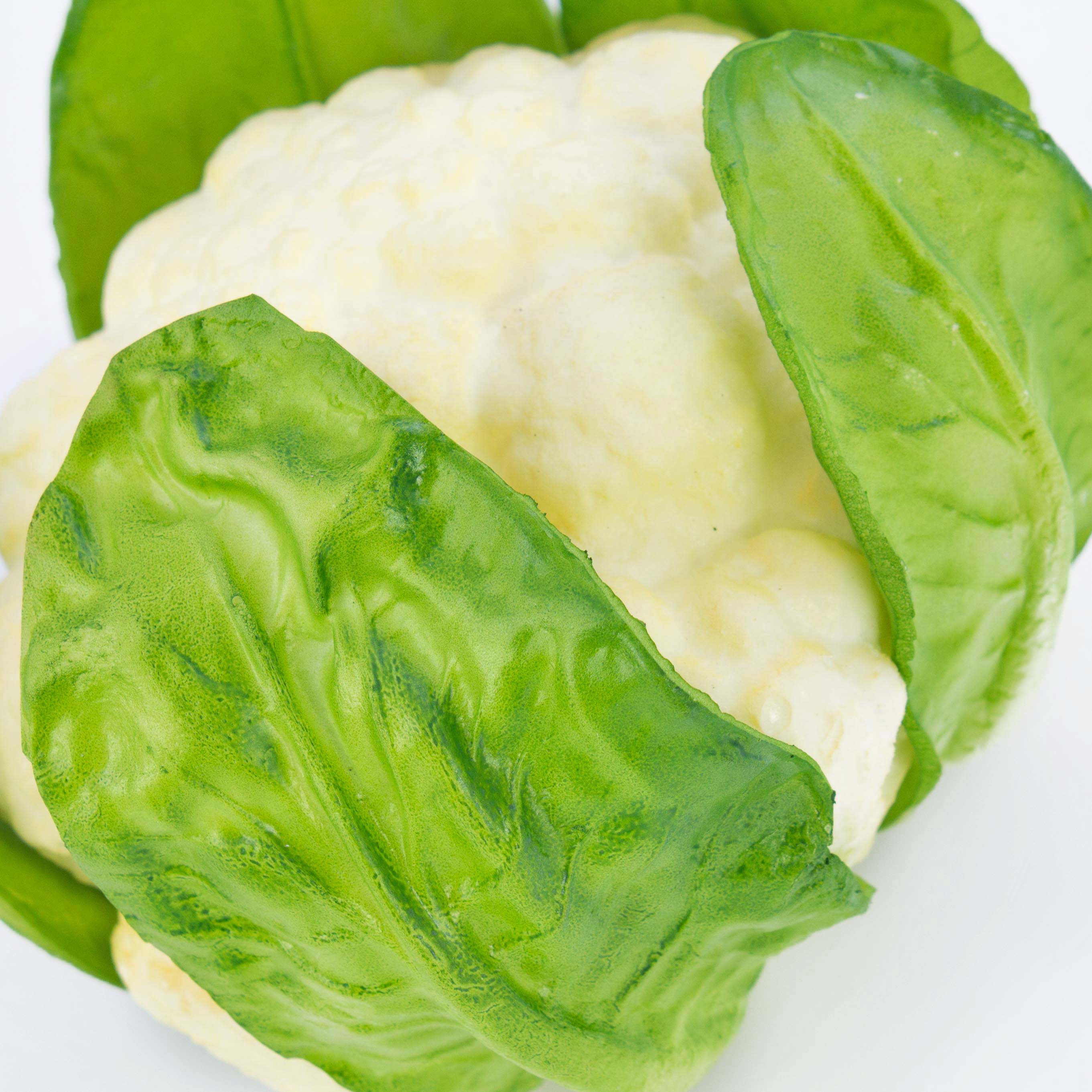 - cauliflower head (4" x 5.1"/10 x 13 cm) with five green leaves