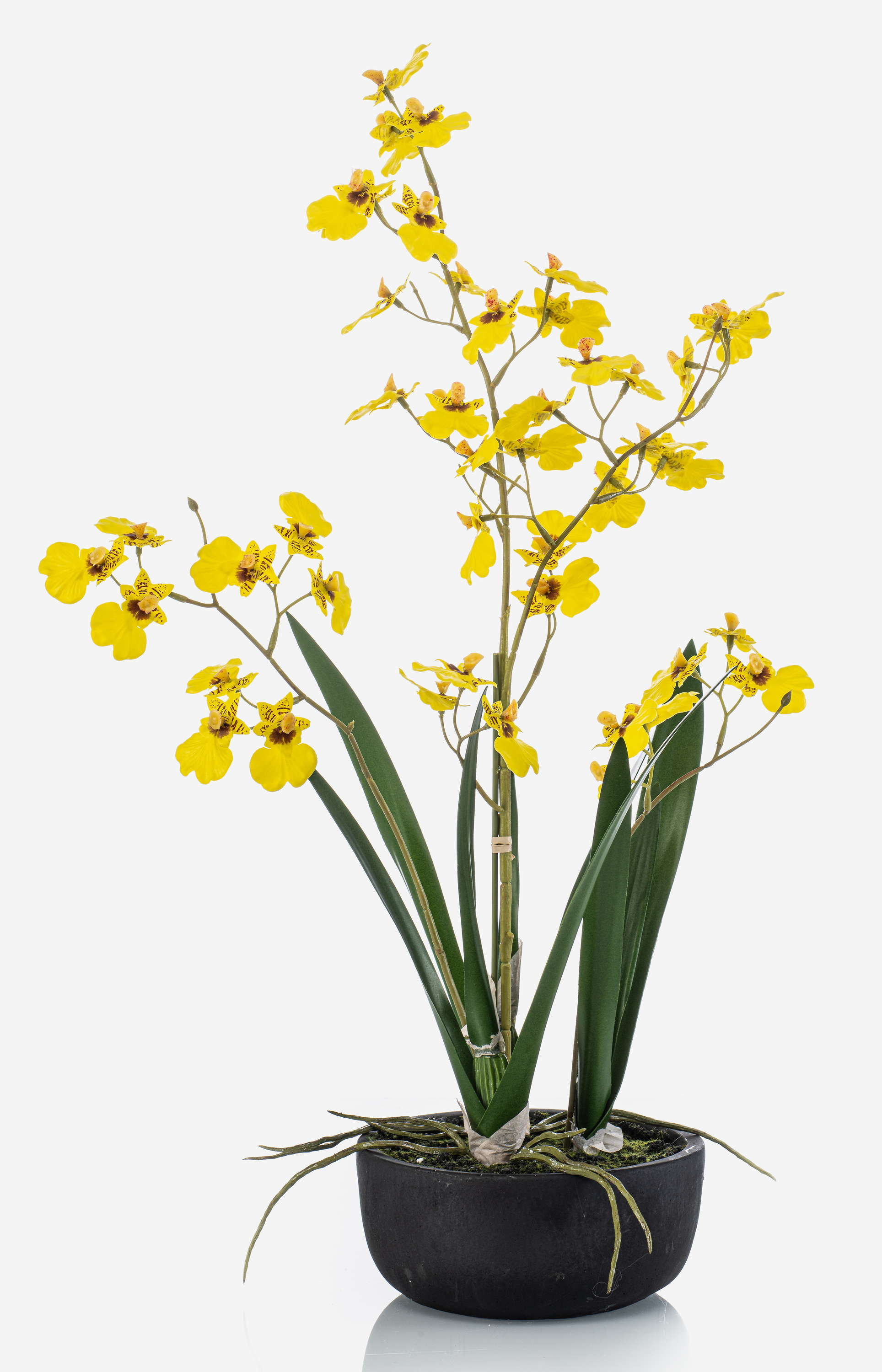 False Oncidium orchid DEISHA in decorative bowl, roots, yellow, 24"/60cm