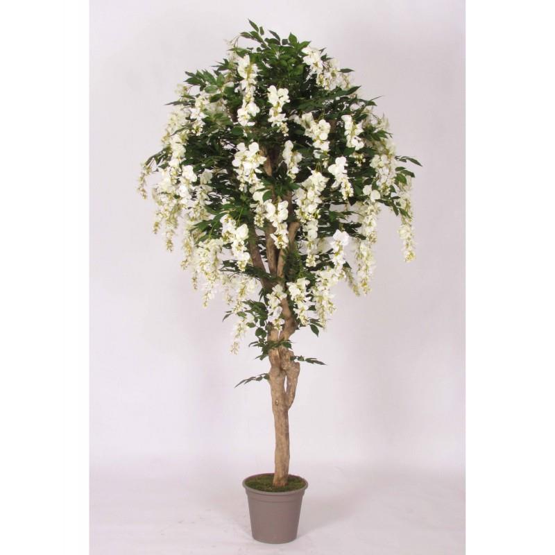 False wisteria ERLINA, real stem, with flowers, white, 6ft/175cm - Made in Italy