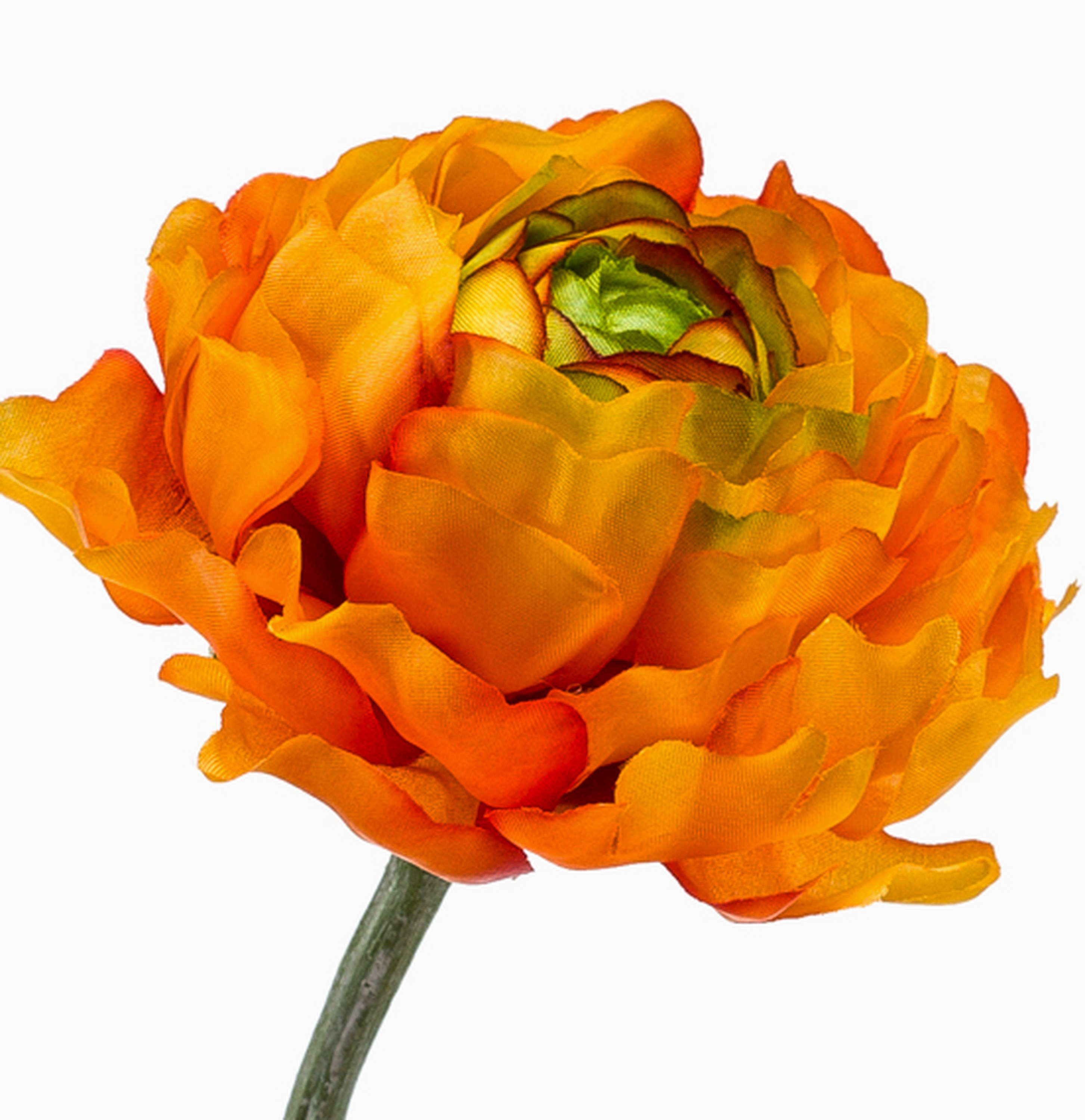 Faux flower Ranunculus ELORIO, orange-green, 20"/50cm