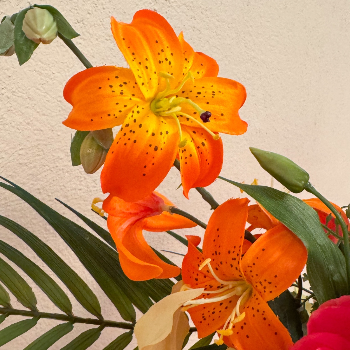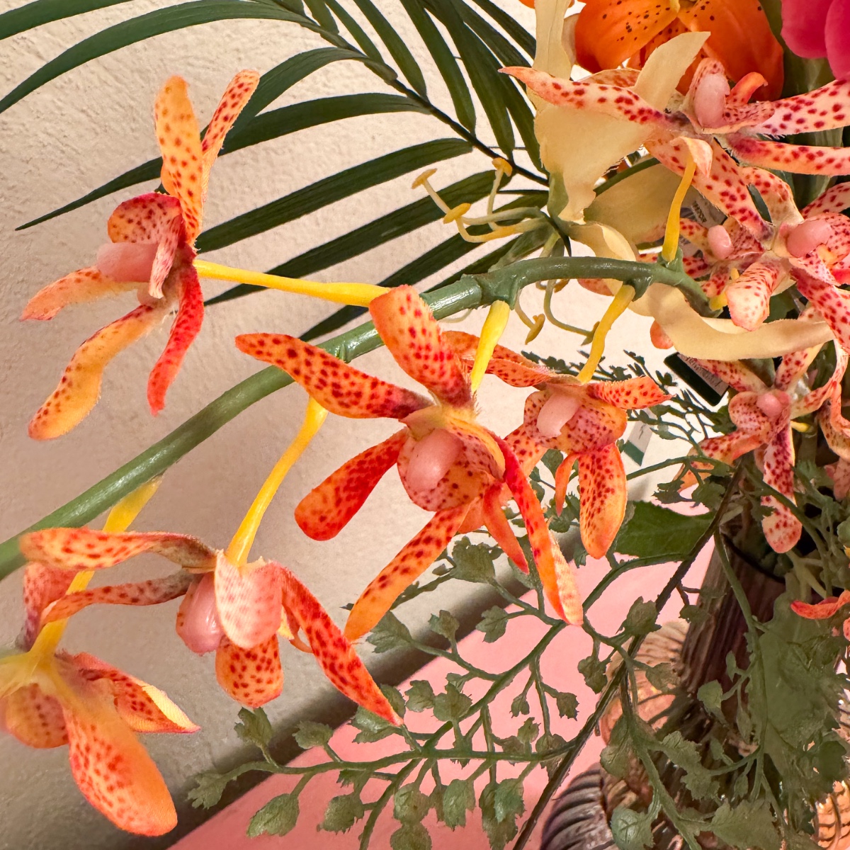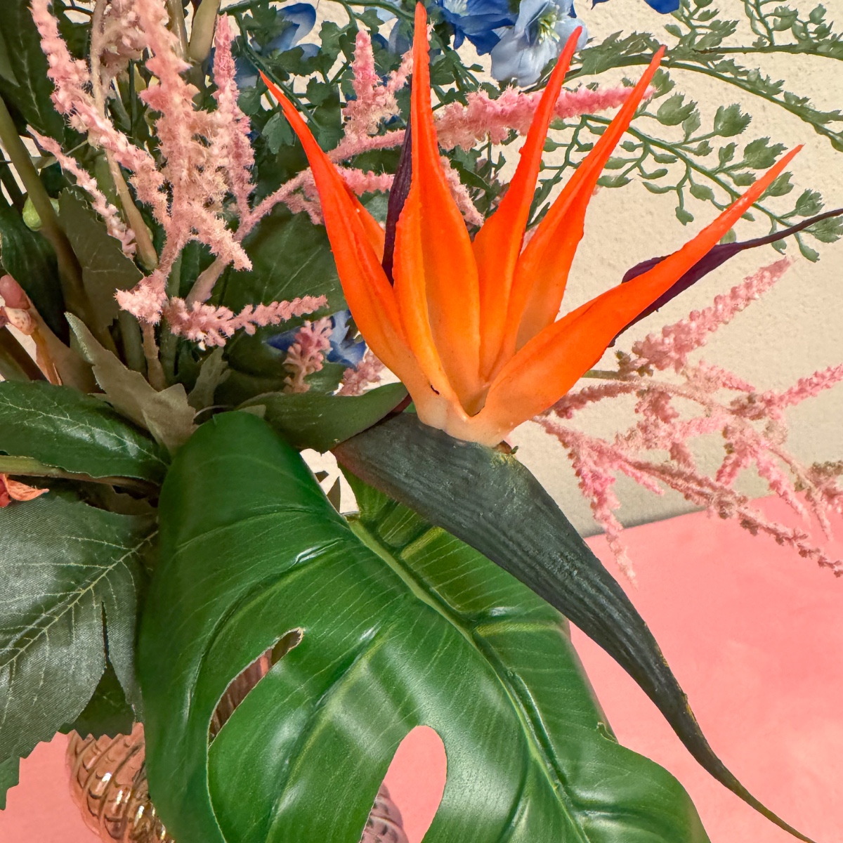 Exotic beauty! For a stylishly furnished dining room decorated with paradisiacal paintings, a bouquet was needed that would blend harmoniously into the overall picture. Colour-coordinated and arranged with a keen sense of style, it subtly evokes memories of unforgettable holidays – an arrangement that creates atmosphere and fills the room with quiet elegance. Shop the look!