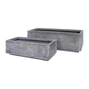 Flower box SUDE, can also be used as a support for room dividers, 2 pieces, fibreglass, grey, 24"x9"x7"/60,5x22,5x17cm, 32"x12"x9"/80,5x30,5x23cm
