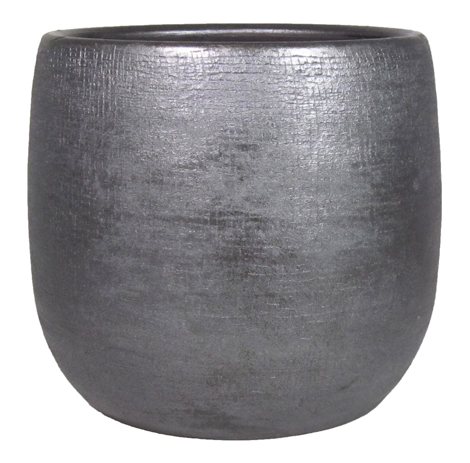 Flower pot made of ceramic AGAPE with texture, black, 11"/27cm, Ø11"/28cm