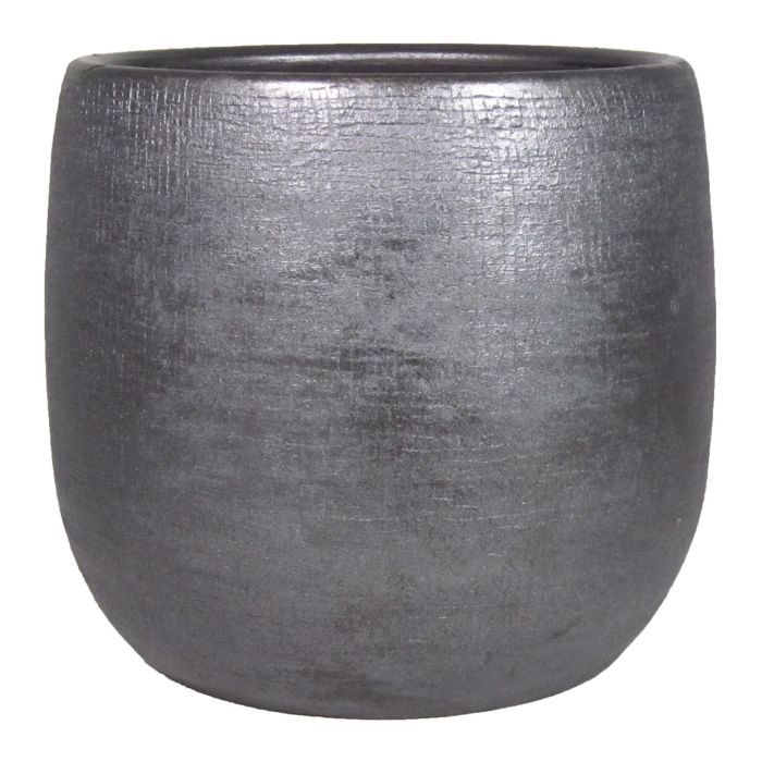 Flower pot made of ceramic AGAPE with texture, black, 14"/36cm, Ø15"/39cm