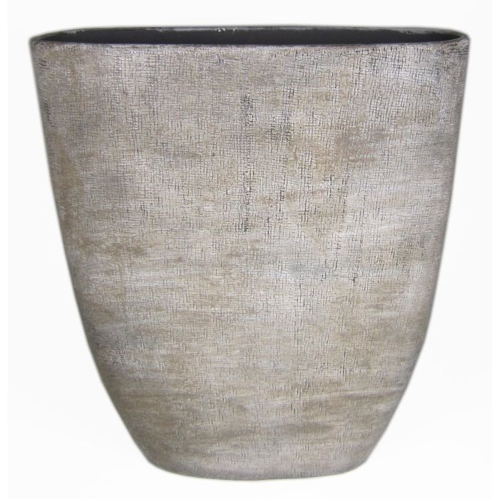 Flower vase made of ceramic AGAPE oval with texture, white-brown, 20"x6.7"x22"/51x17x57cm