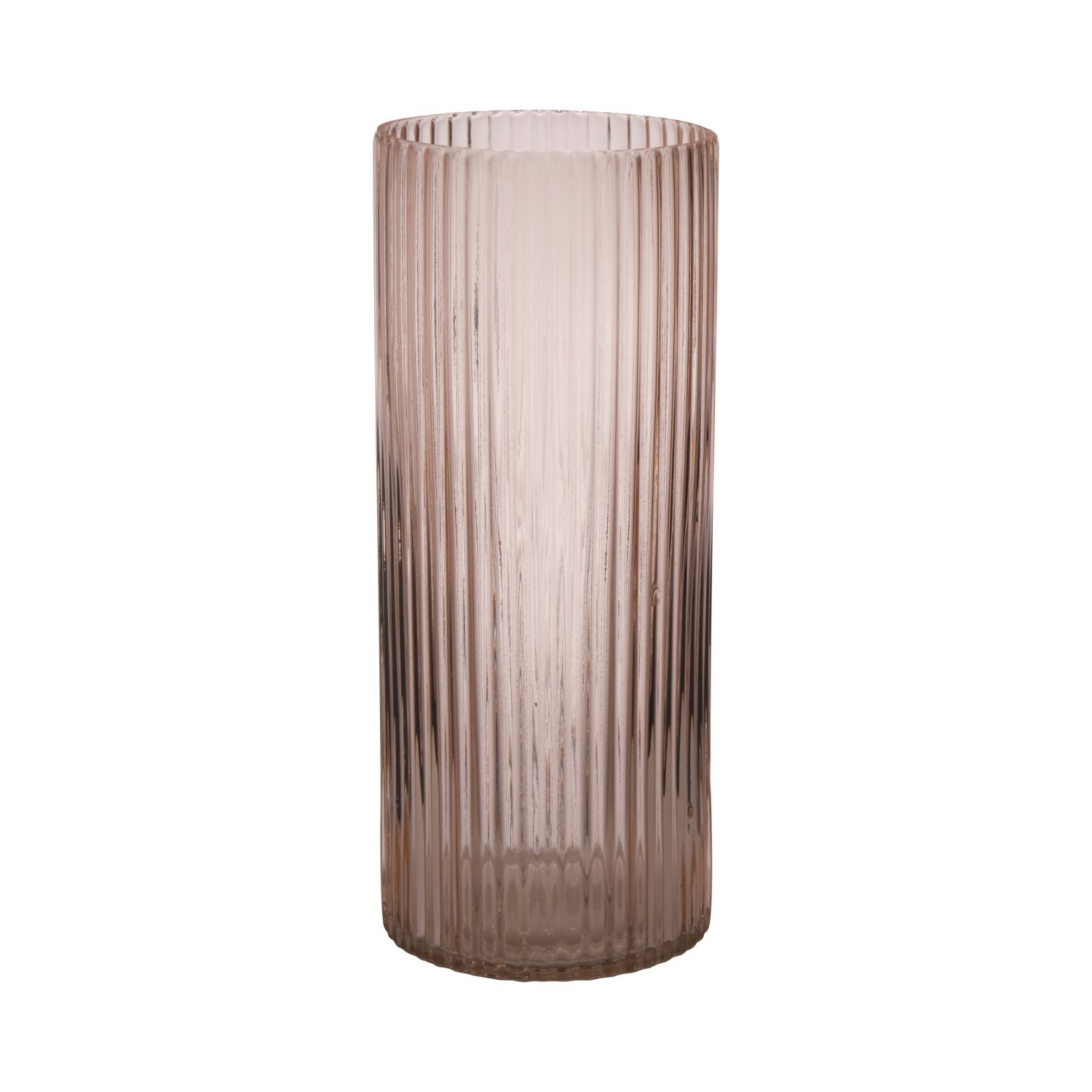 Flower vase SORCHA with grooves, glass, pale pink-clear, 30cm, Ø12,5cm