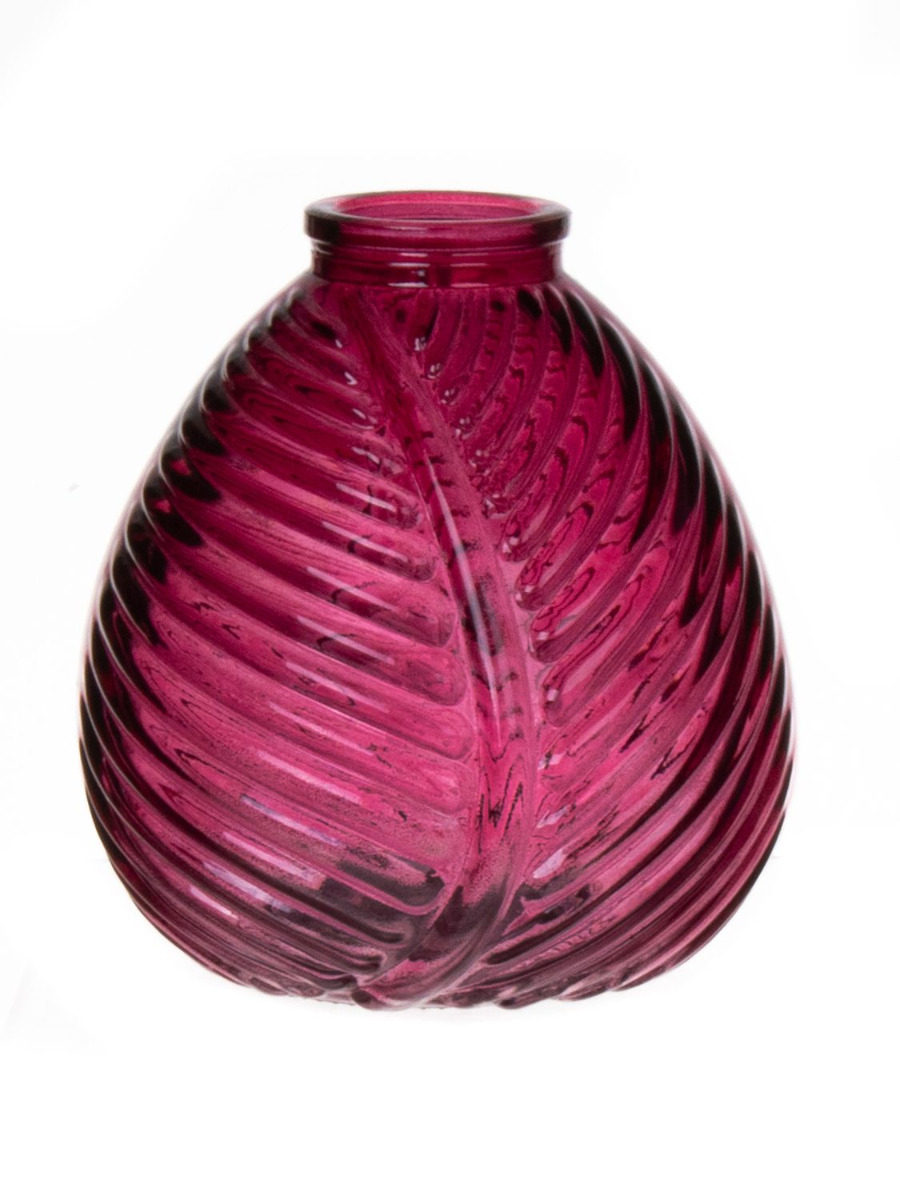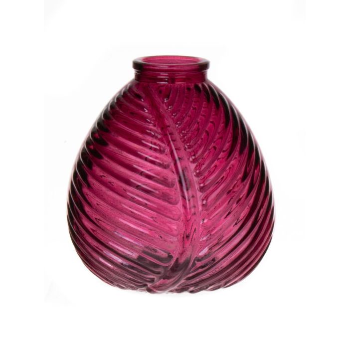 Glass bottle NELLOMIO with leaf structure, fuchsia-clear, 5.1"/13cm, Ø4.7"/12cm