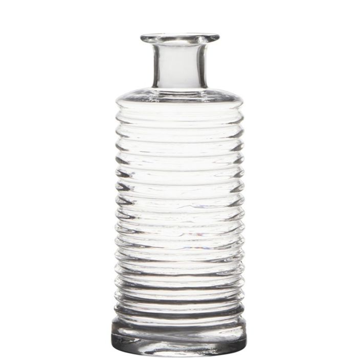 Glass bottle STUART with grooves, clear, 8"/21,5cm, Ø3.7"/9,5cm
