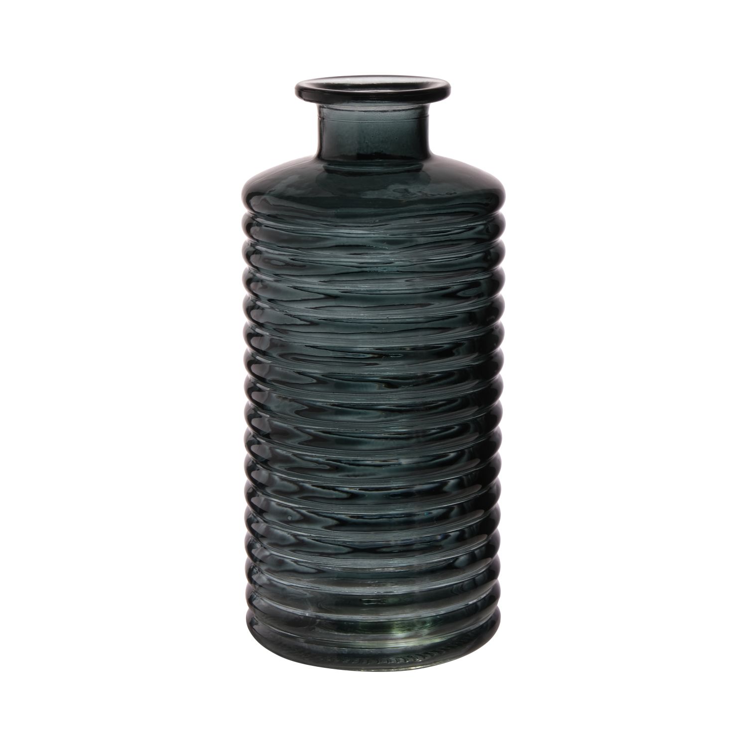 Glass bottle STUART with grooves, forest green-clear, 31cm, Ø14,5cm