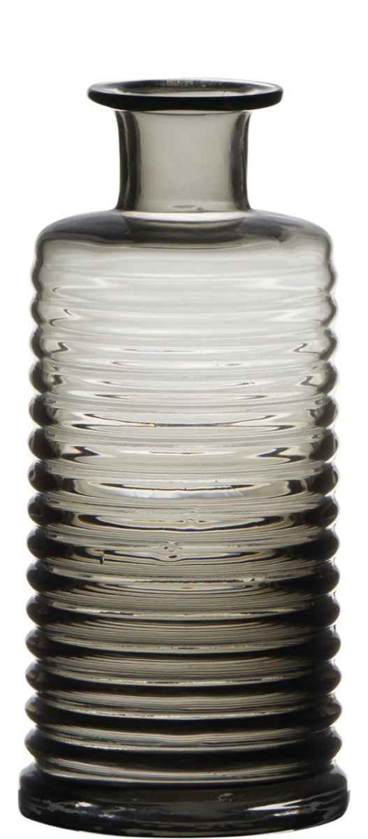 Glass bottle STUART with grooves, grey-clear, 8"/21,5cm, Ø3.7"/9,5cm