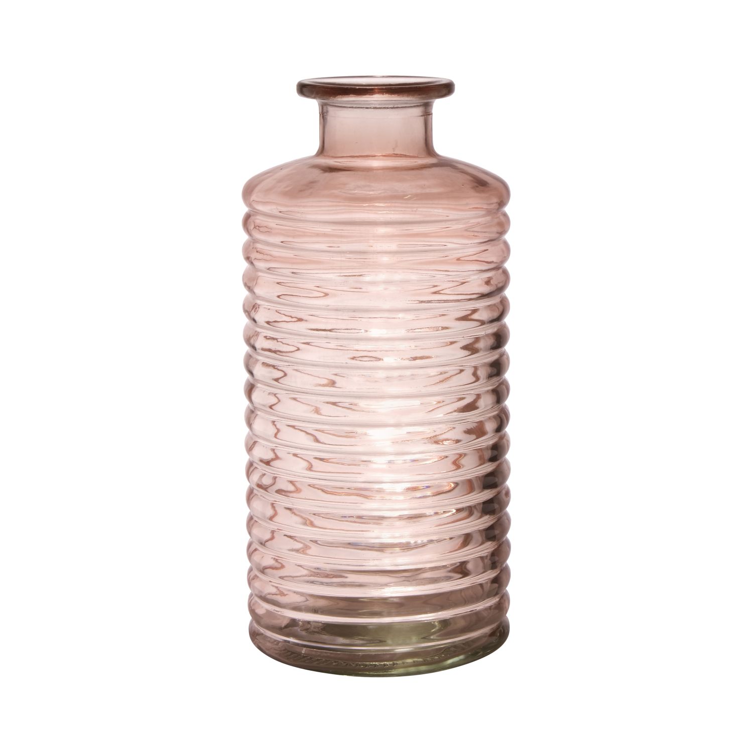 Glass bottle STUART with grooves, pale pink-clear, 31cm, Ø14,5cm