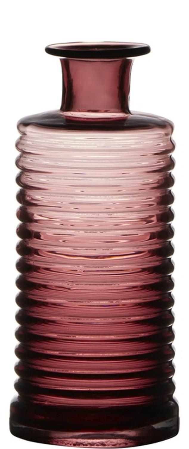 Glass bottle STUART with grooves, red-clear, 8"/21,5cm, Ø3.7"/9,5cm