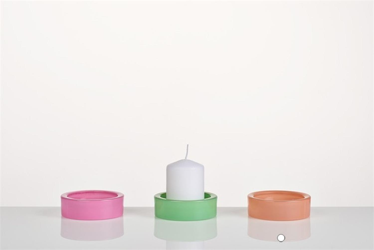 Glass candle holder ARBENITA, peach, 3cm, Ø9,5cm