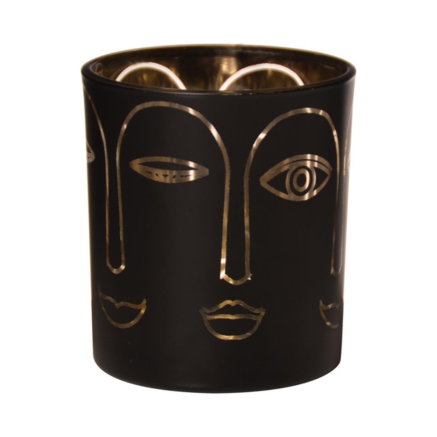 Glass candle holder LEOLINE with faces, black-gold, 3.1"/8cm, Ø2.8"/7cm