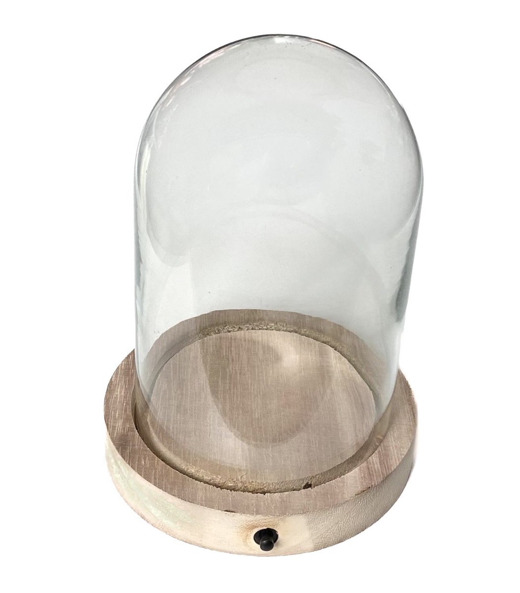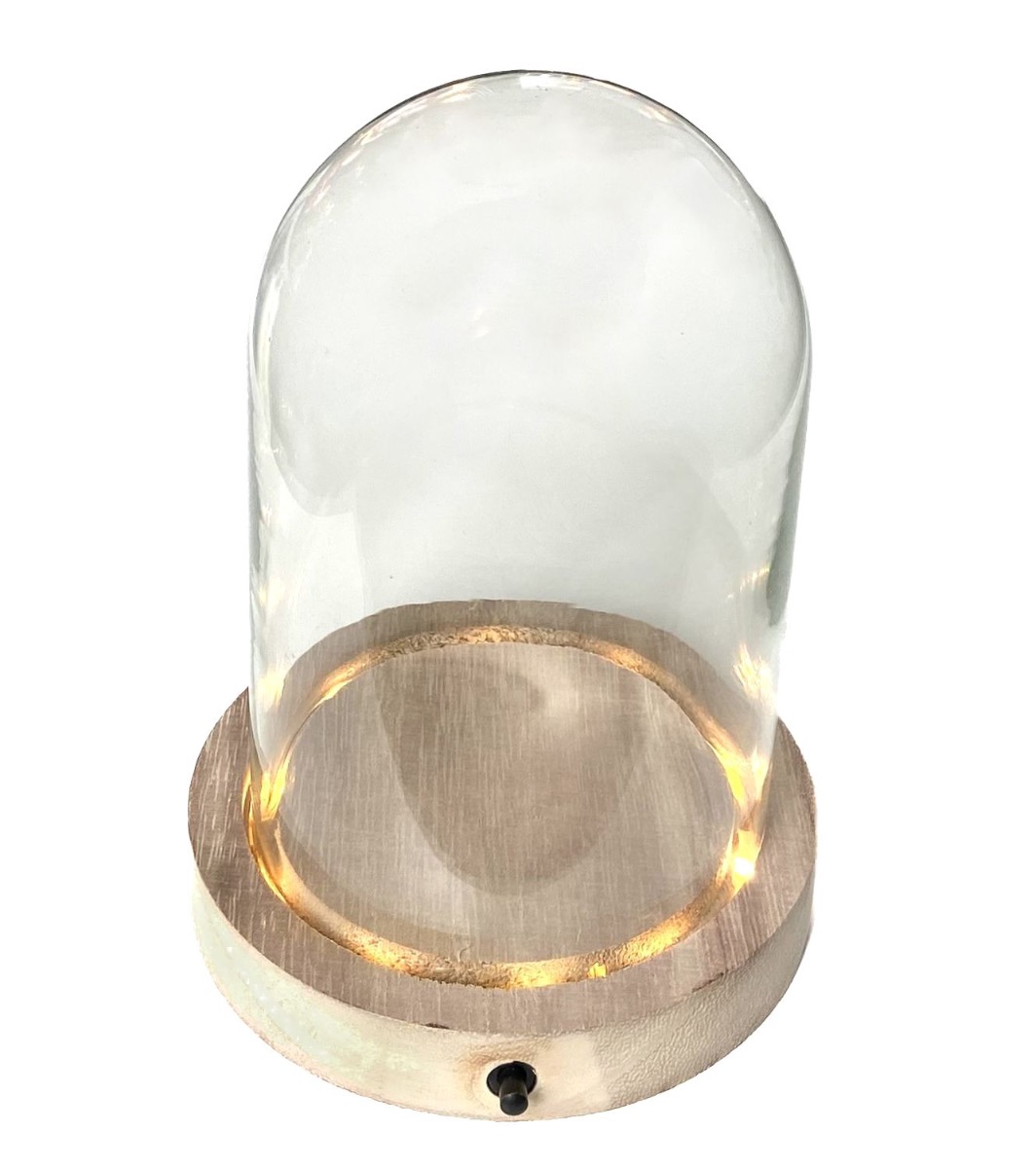 Glass dome BENIGNA with LEDs, wooden base, transparent, 5.3"/13,5cm, Ø4.7"/12cm