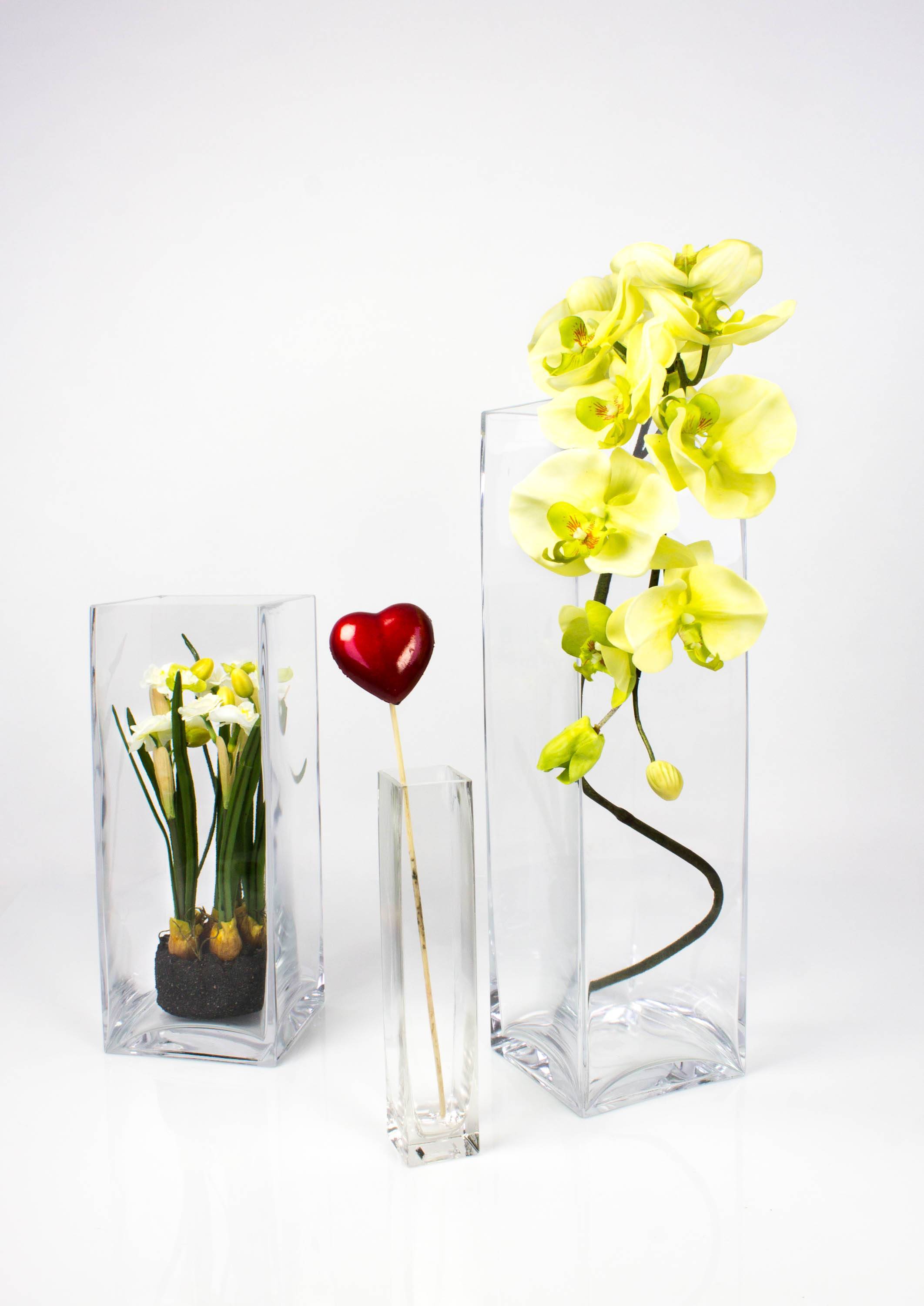 Glass flower vase angular JACK EARTH, clear, 5.5"x5.5"x19"/14x14x49cm