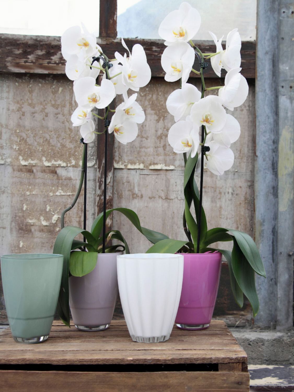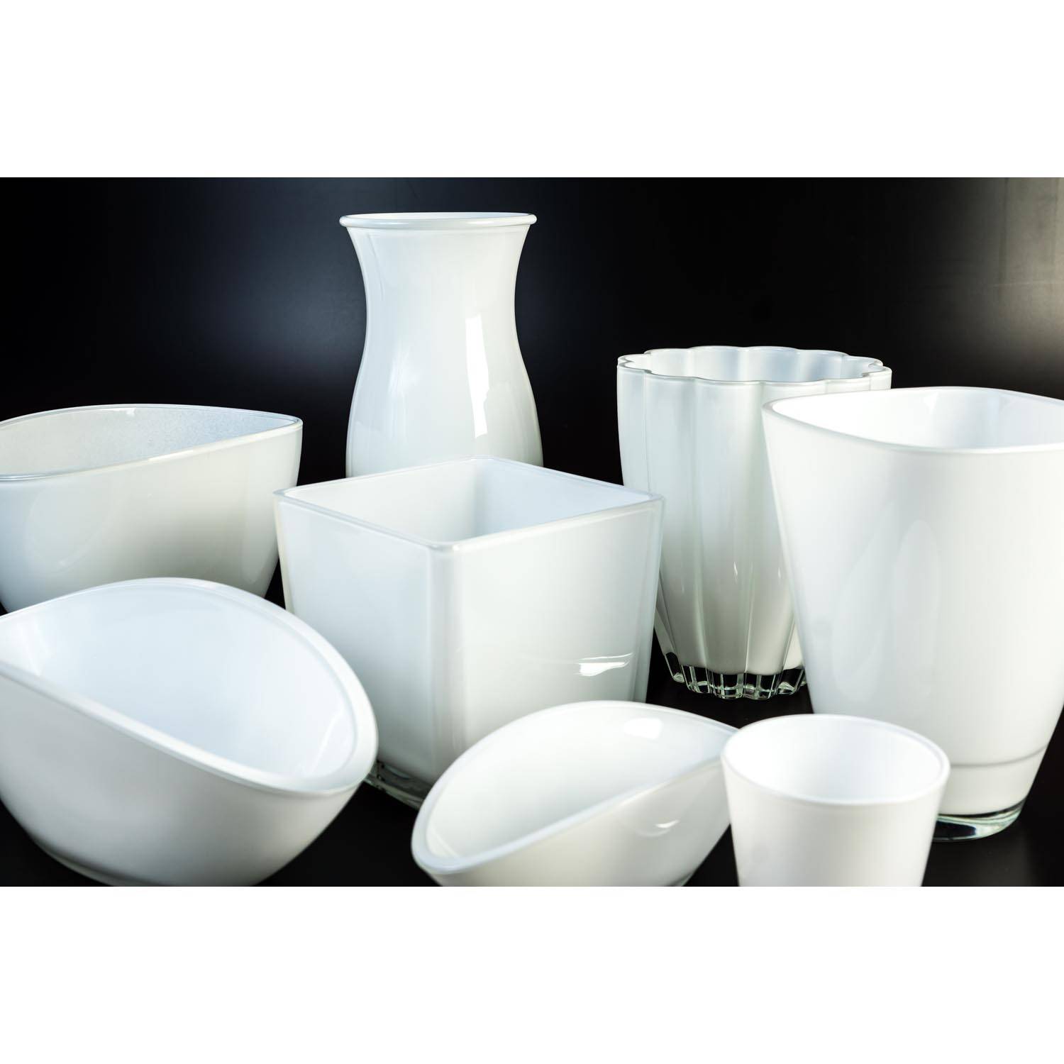 Glass flower vase BEA, white, 6.7"/17cm, Ø5.5"/14cm