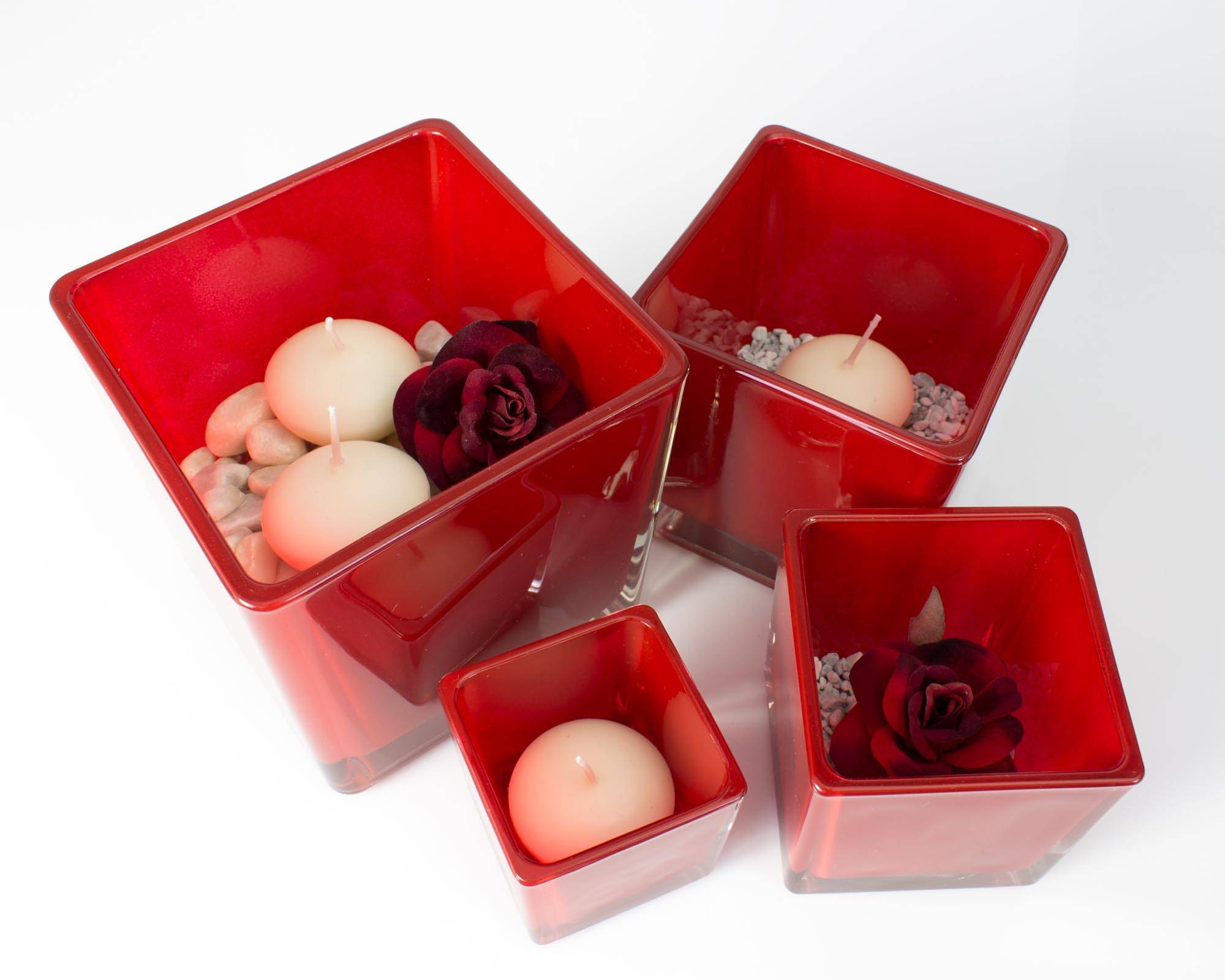 Glass lantern KIM EARTH, red, 3.1"x3.1"x3.1"/8x8x8cm