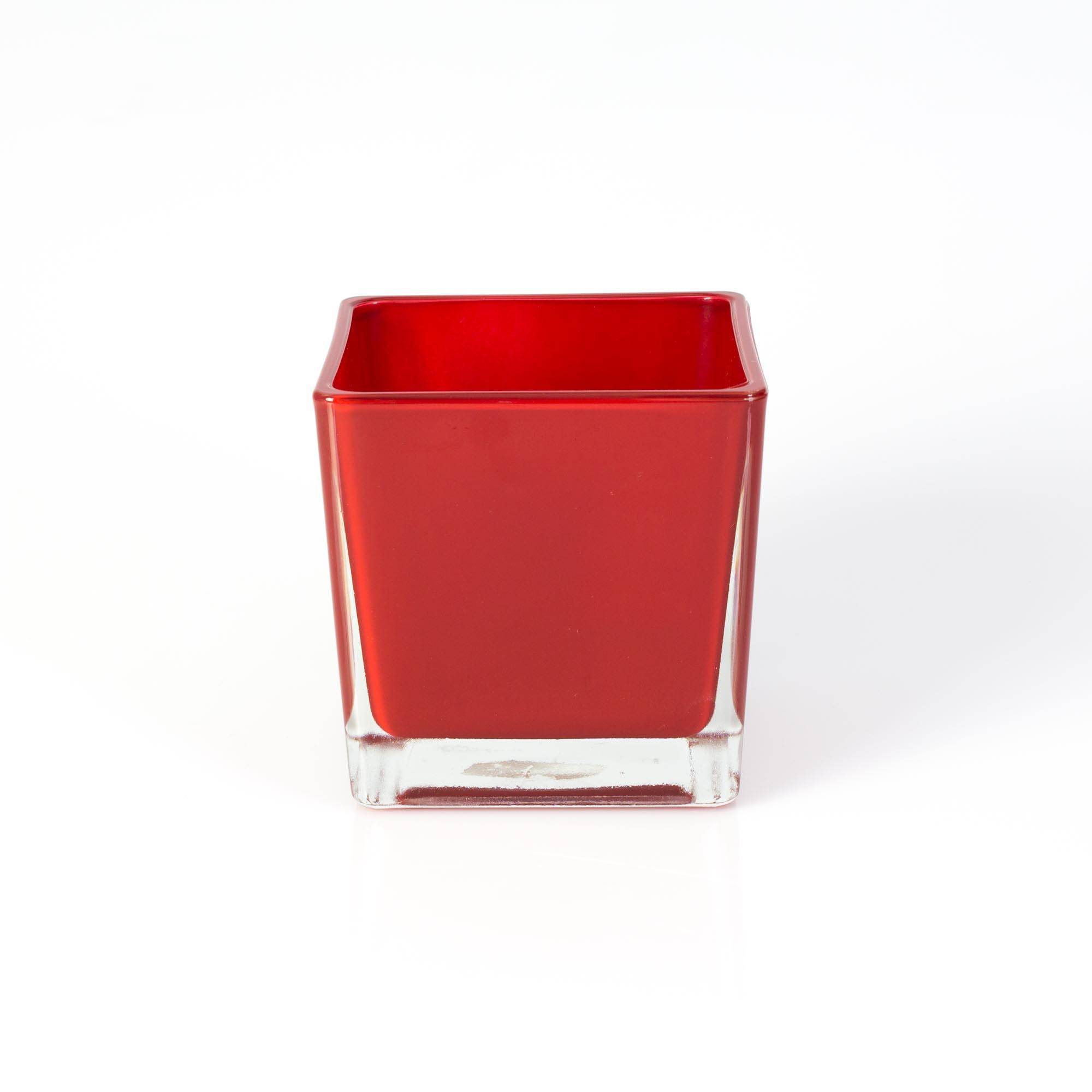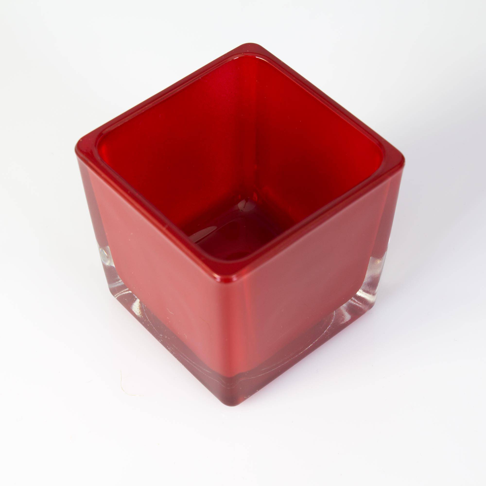 Glass lantern KIM EARTH, red, 4"x4"x4"/10x10x10cm