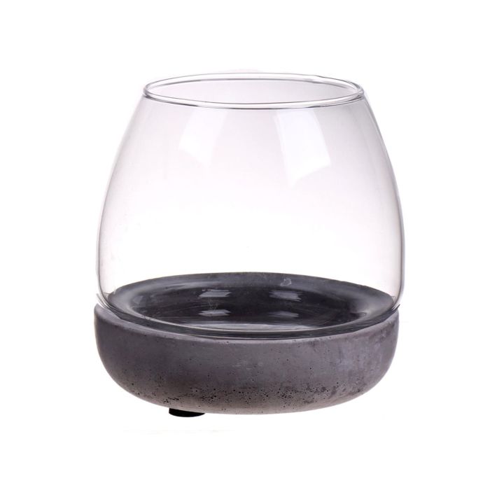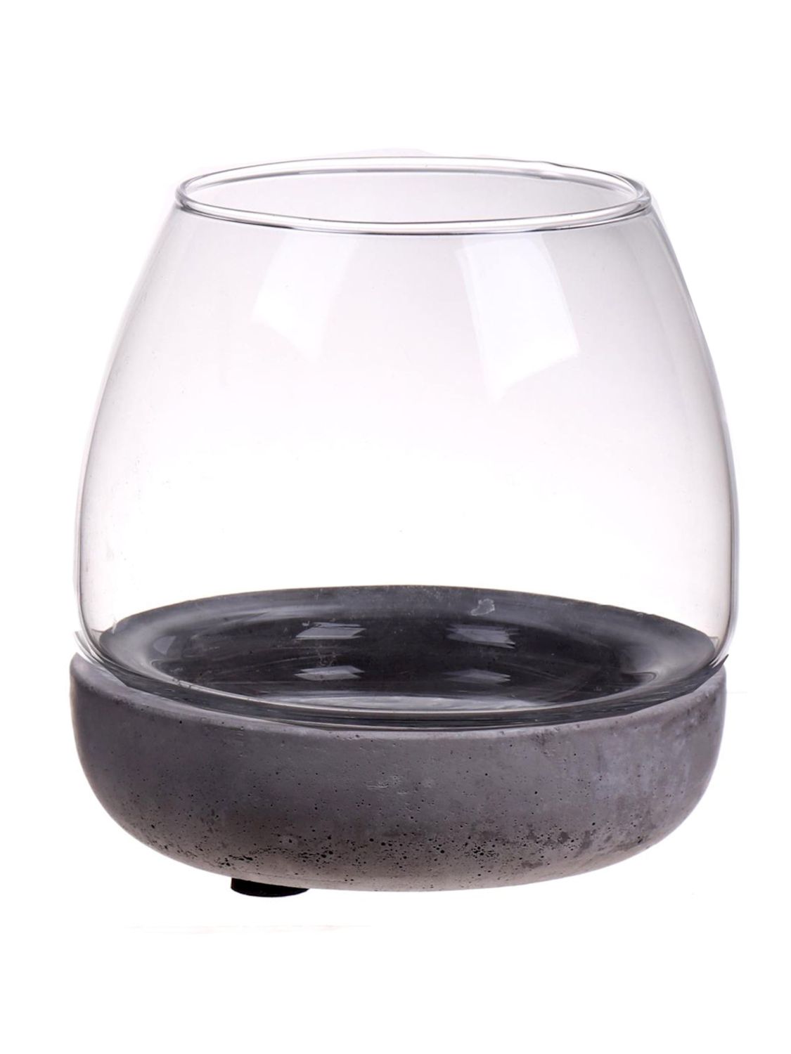 Glass lantern TONDA, concrete base, clear, 4.1"/10,5cm, Ø4"/10cm